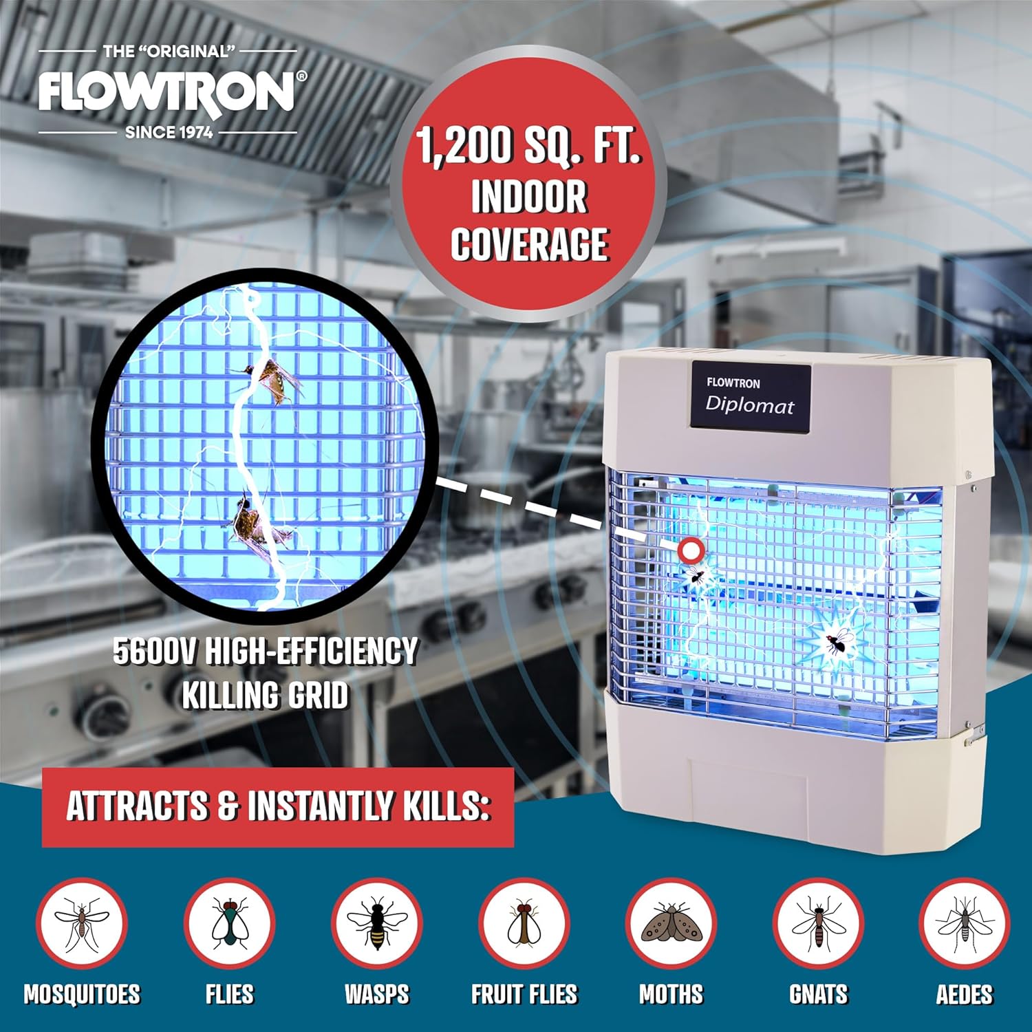 Flowtron Indoor Bug Zapper | Electric Fly & Insect Killer with 80W UV Light, Pheromone Lure Attractant, Shock Kill Grid & Reflector Panels | 1200 Sq Ft for Kitchen, Restaurant & Barn, UL Certified
