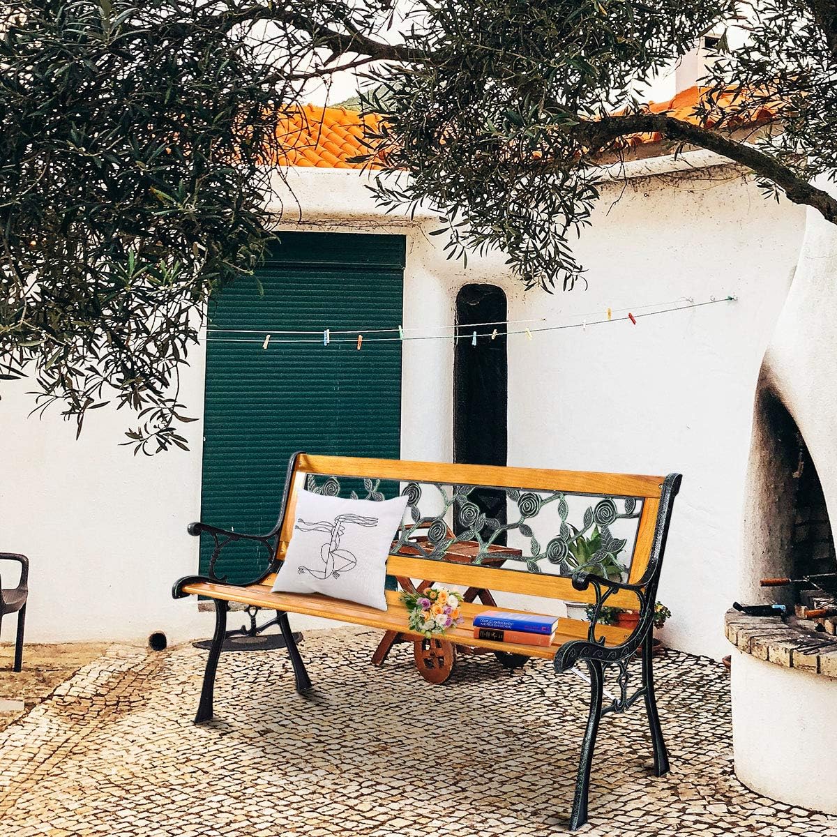- ▶ Ornamental Practical Outdoor Bench ▶ The garden bench featuring a simple style that it is easy to match well with any space. It will be a great addition to your backyard, porch, patio, poolside. It’s not just a decorative but also a functional bench which provides you a place to rest.