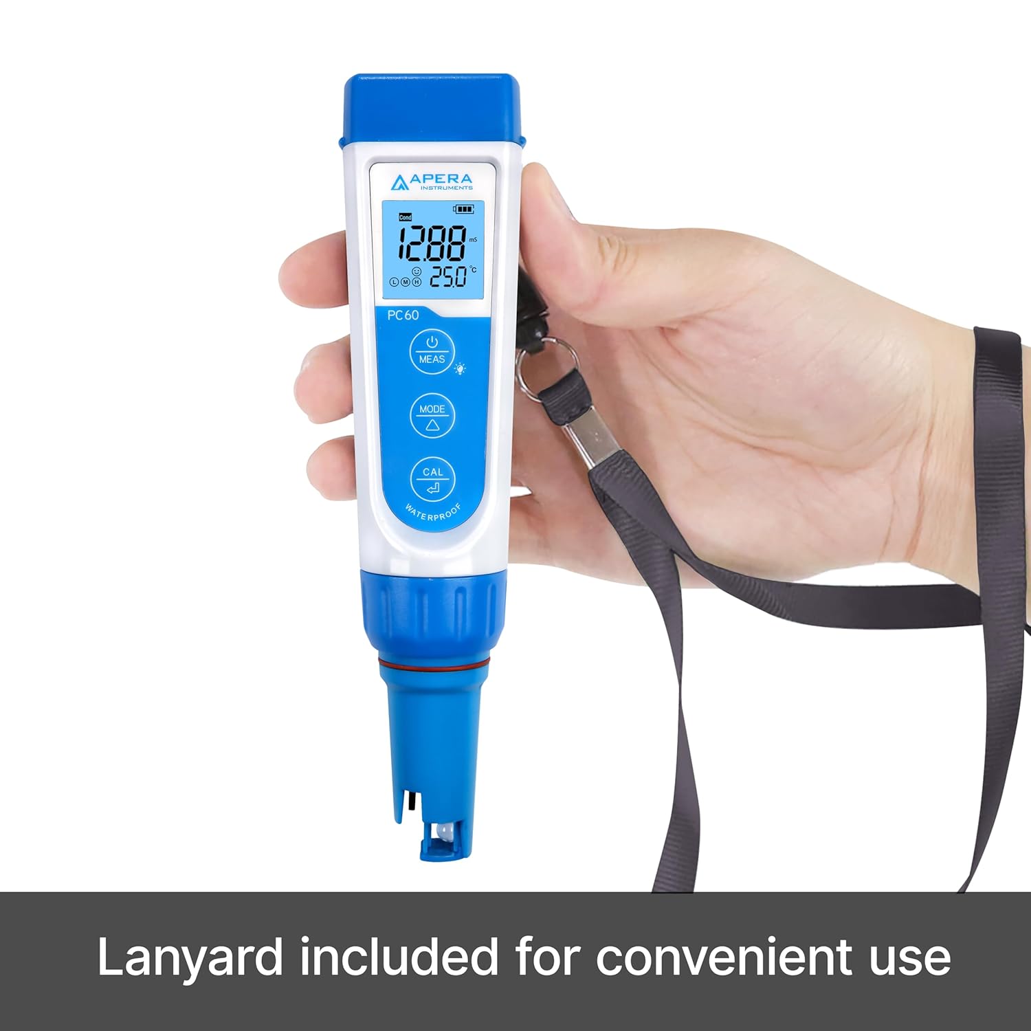 APERA INSTRUMENTS AI316 Premium Series PC60 5-in-1 Waterproof pH/EC (Conductivity) /TDS (ppm) /Salinity (ppt) /Temp. Multi-Parameter Pocket Tester Kit