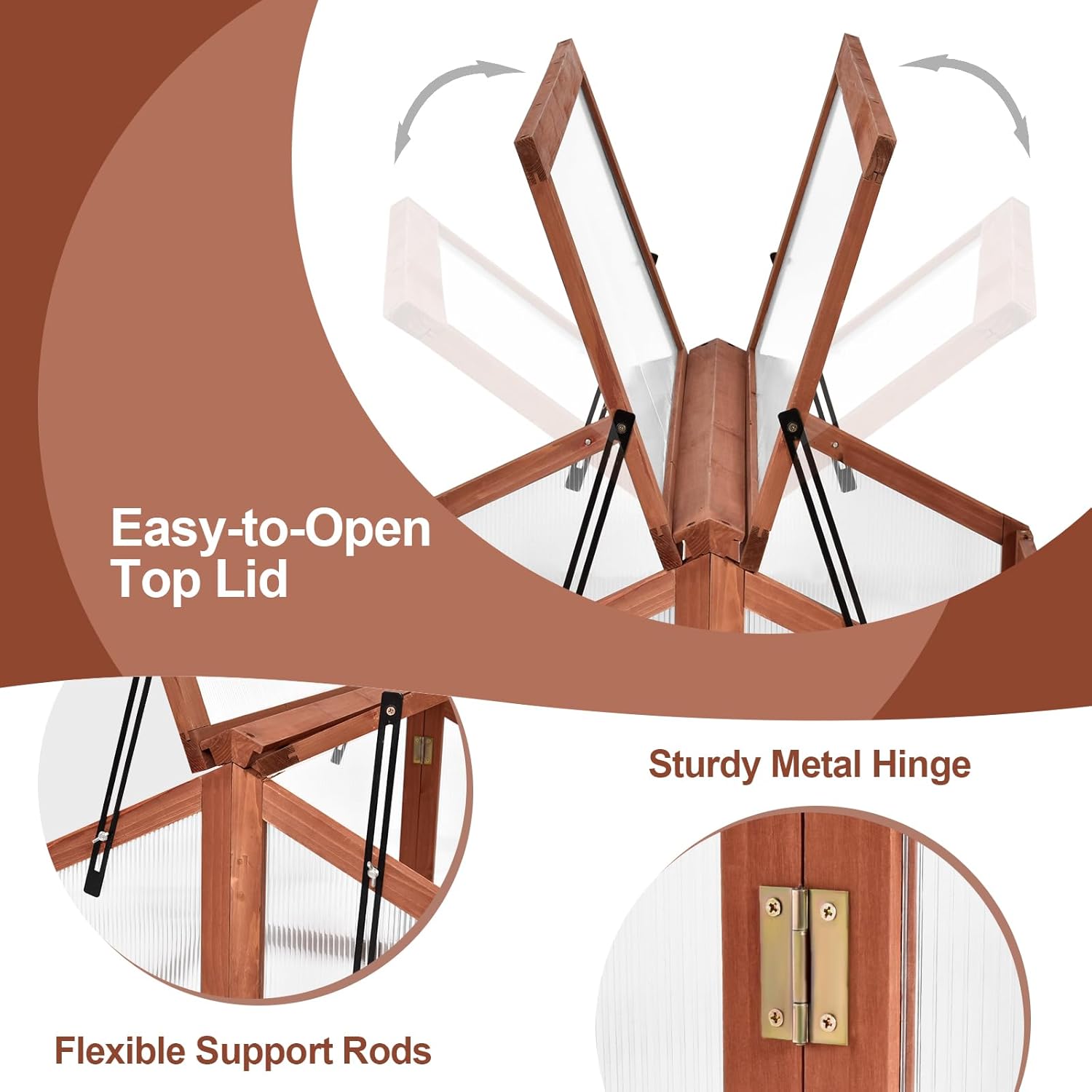 Giantex Garden Portable Wooden Cold Frame Greenhouse Raised Flower Planter Protection (35.4"X31.3"X23.0")
