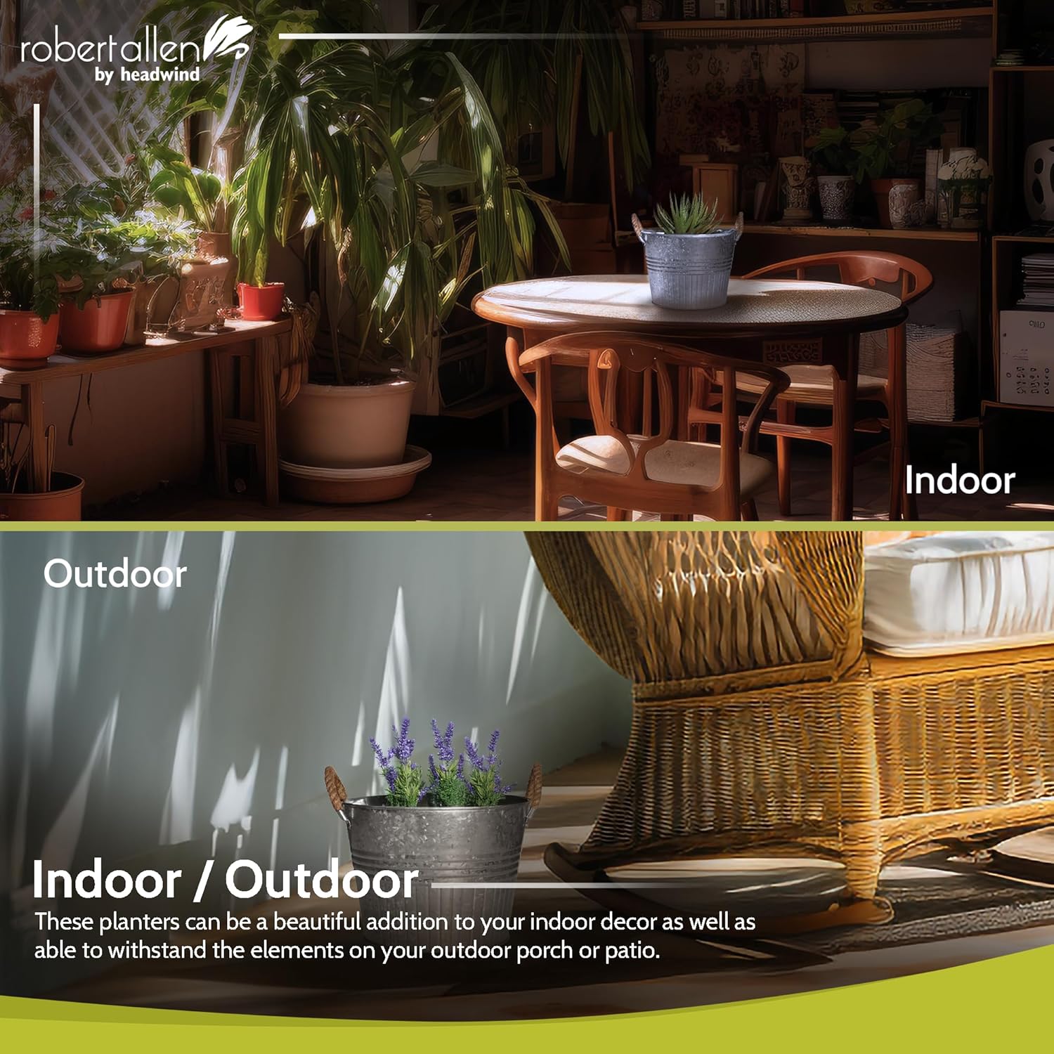 Headwind Round Galvanized Bucket w/Rope Handles – 8 Inch Metal Tub Bucket Planter for Outdoor Plants with Drainage Hole – Galvanized Large Outdoor Planters Buckets by Robert Allen