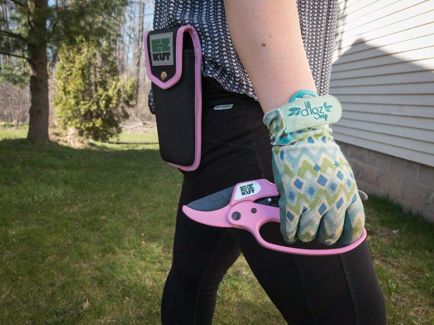 EZ Kut Original Ratcheting Pruner Kit with Molded Ballistic Nylon Sheath and Carbide Blade Tool, Pink and Black