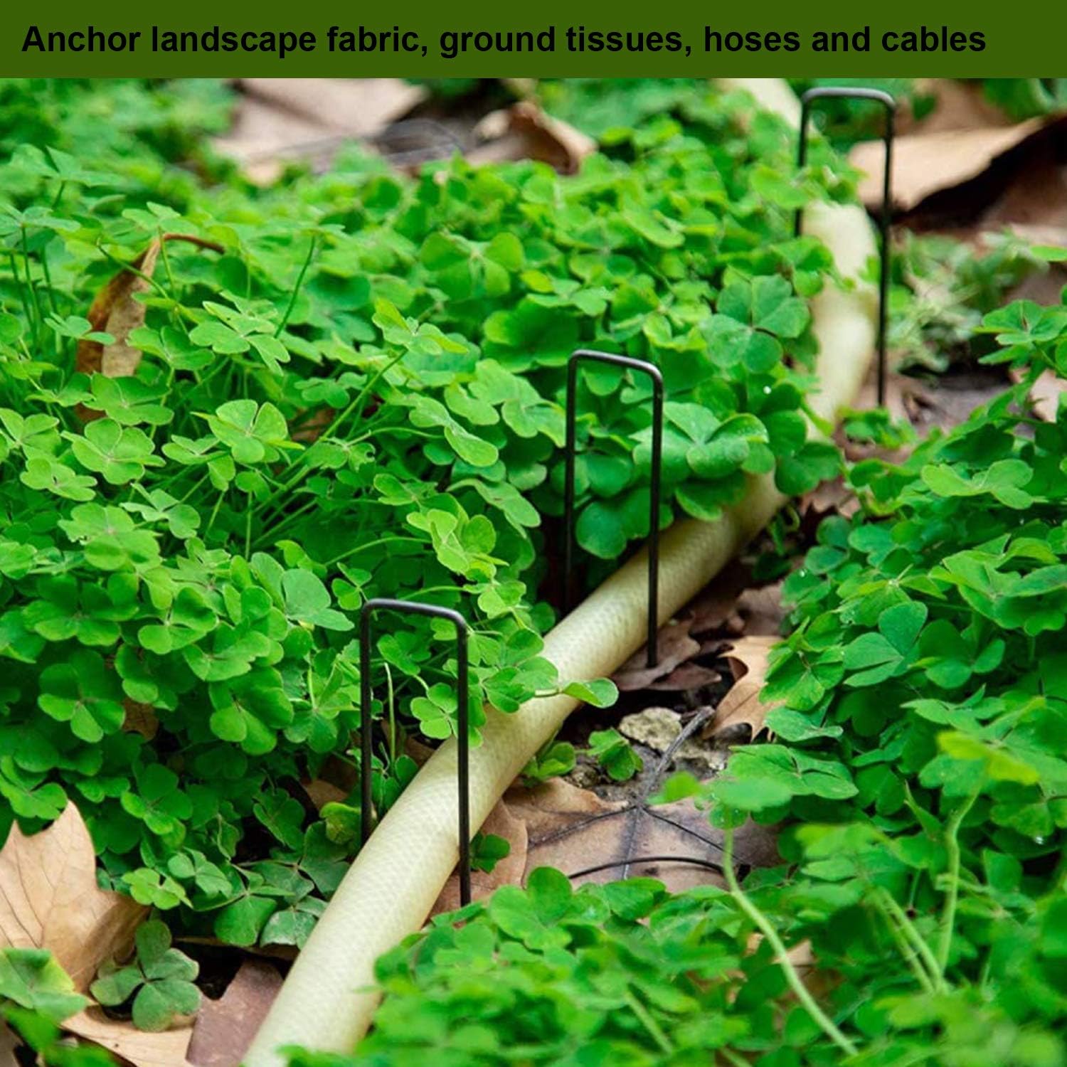 - NUMEROUS USES - Black landscape sod staples are designed to enhance your outdoor landscape fabric, patio, garden edging, yard decorations, chain link fence and countless items.Heavy duty steel stakes hold down your landscape fabric or plastic to keep weeds away from plants.