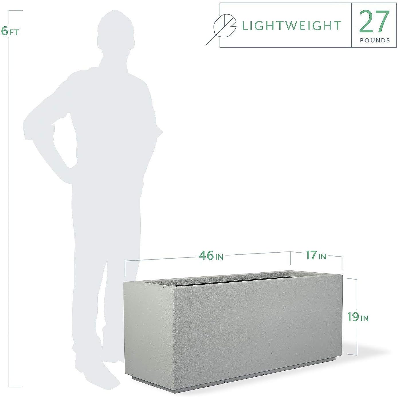 PolyStone Milan Tall Modern Outdoor/Indoor Rectangular Trough Planter, 46" L X 17" W X 19" H, Lightweight, Heavy Duty, Weather Resistant, Polymer Finish, Commercial and Residential (Concrete Gray)