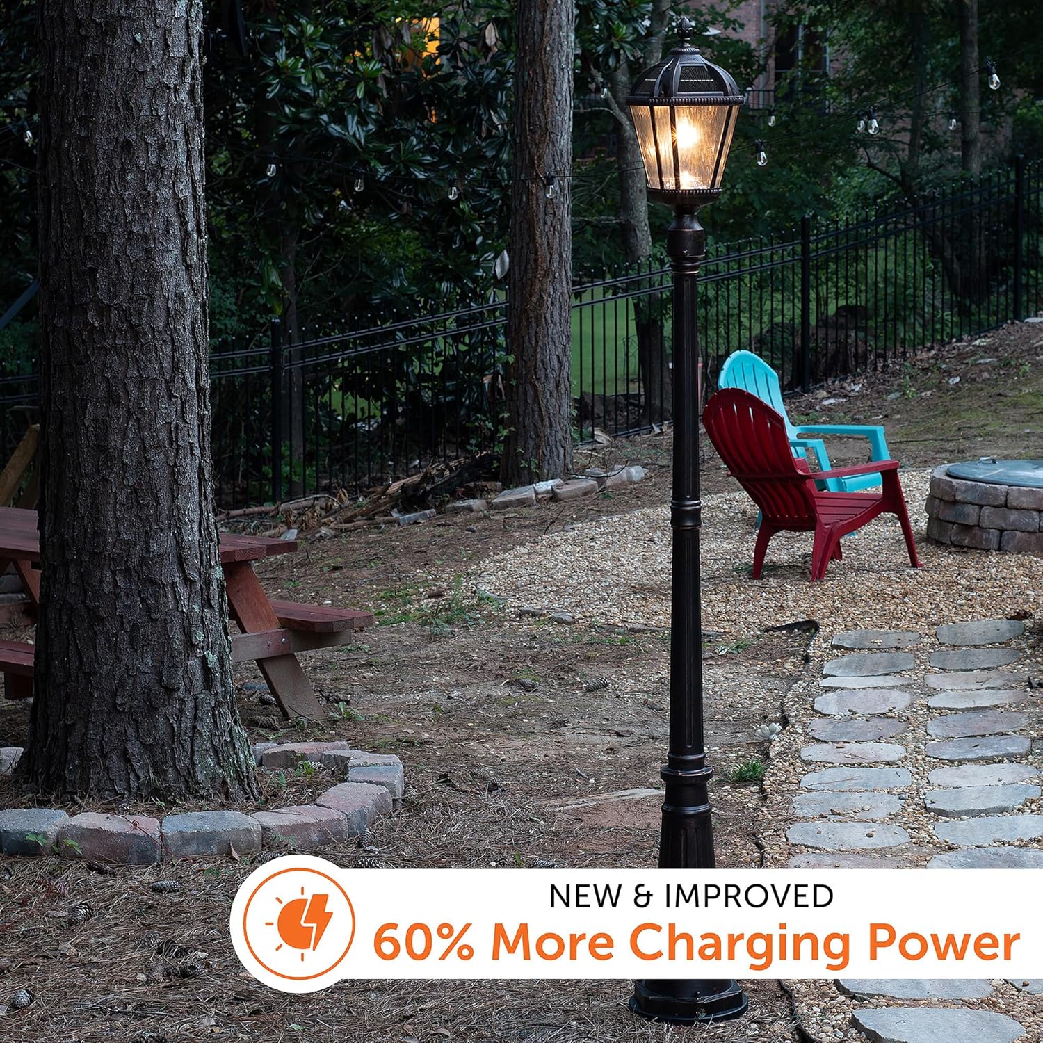 Gama Sonic Outdoor Solar Lamp Post Light, Brushed Bronze Aluminum and Rain Glass Panels, 10-Year Royal Bulb, Warm White LED with Omni-Direction Reflector, 87-inch Height, 98B101 (Upgraded)