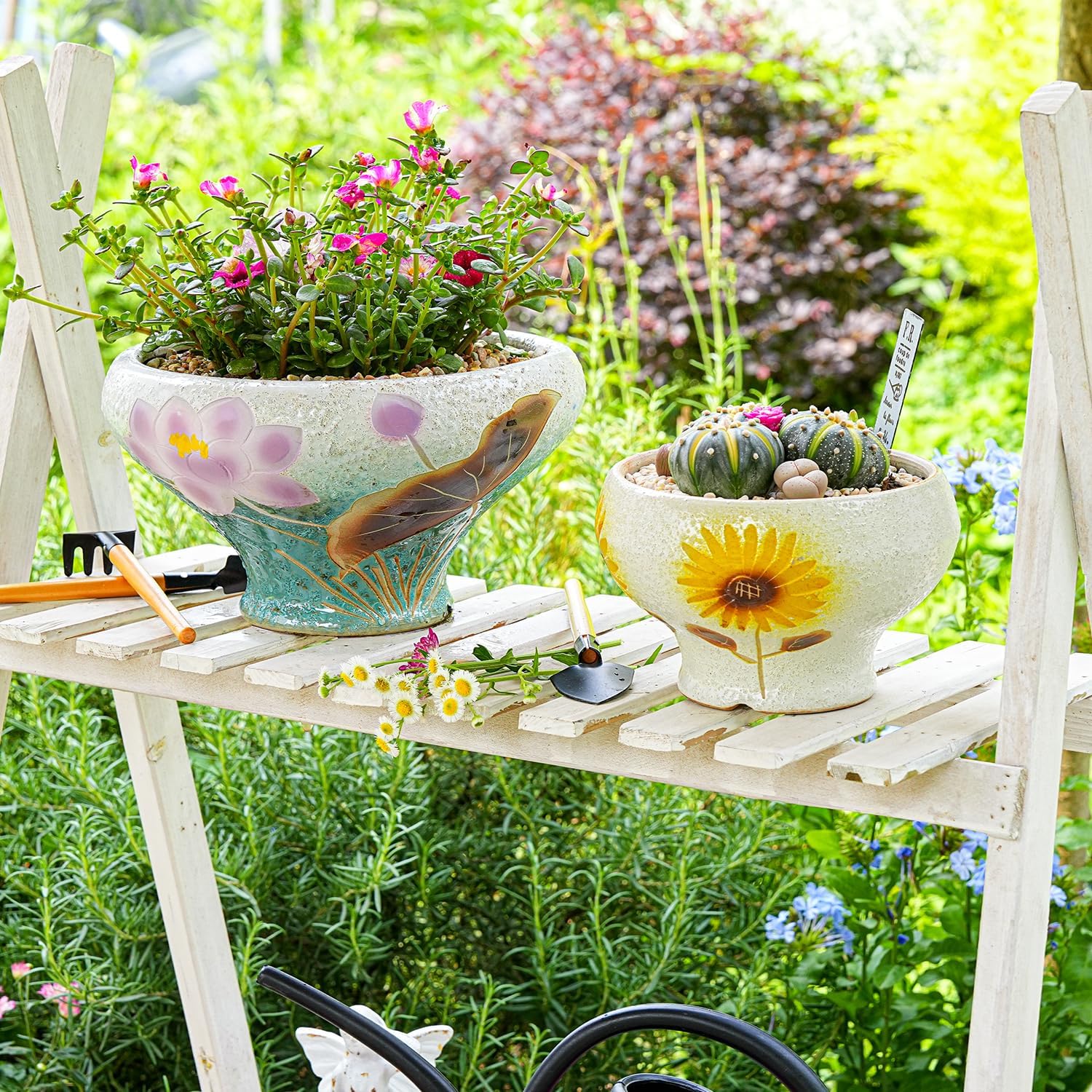 - Handicrafts: This set of beautifully design ceramic succulent pots are handcrafted, beautiful vibrant colors with hand painted flower. The subtle variations in the glaze add character, great artistry and attractive.