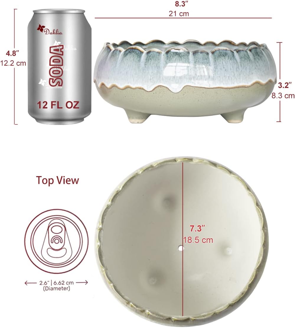 Dahlia 8.3'' Inch Large/Shallow/Wide Drip Glazed Ceramic Planter/Succulent Pot/Plant Pot, Gray