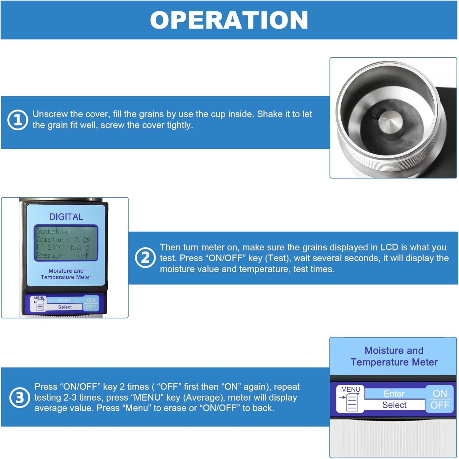 - π πππ & ππππππππ ππππππ β The MT-25 moisture tester offers fast and precise moisture readings, helping users quickly assess grain quality. Its quick response time ensures that testing processes are streamlined, saving time while providing reliable data for various grains.