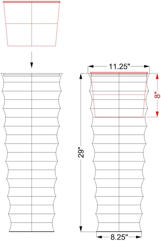 - Ribbed Planter Dimensions: Planter stands 29 inches tall and 11.25 inches square at the mouth of the planter, with the base measuring 8.25 inches square, included drip tray measures 10 inches square and is approximately 1.5 inches deep. Let this dynamically sized copper pot become the perfect addition to a porch or patio
