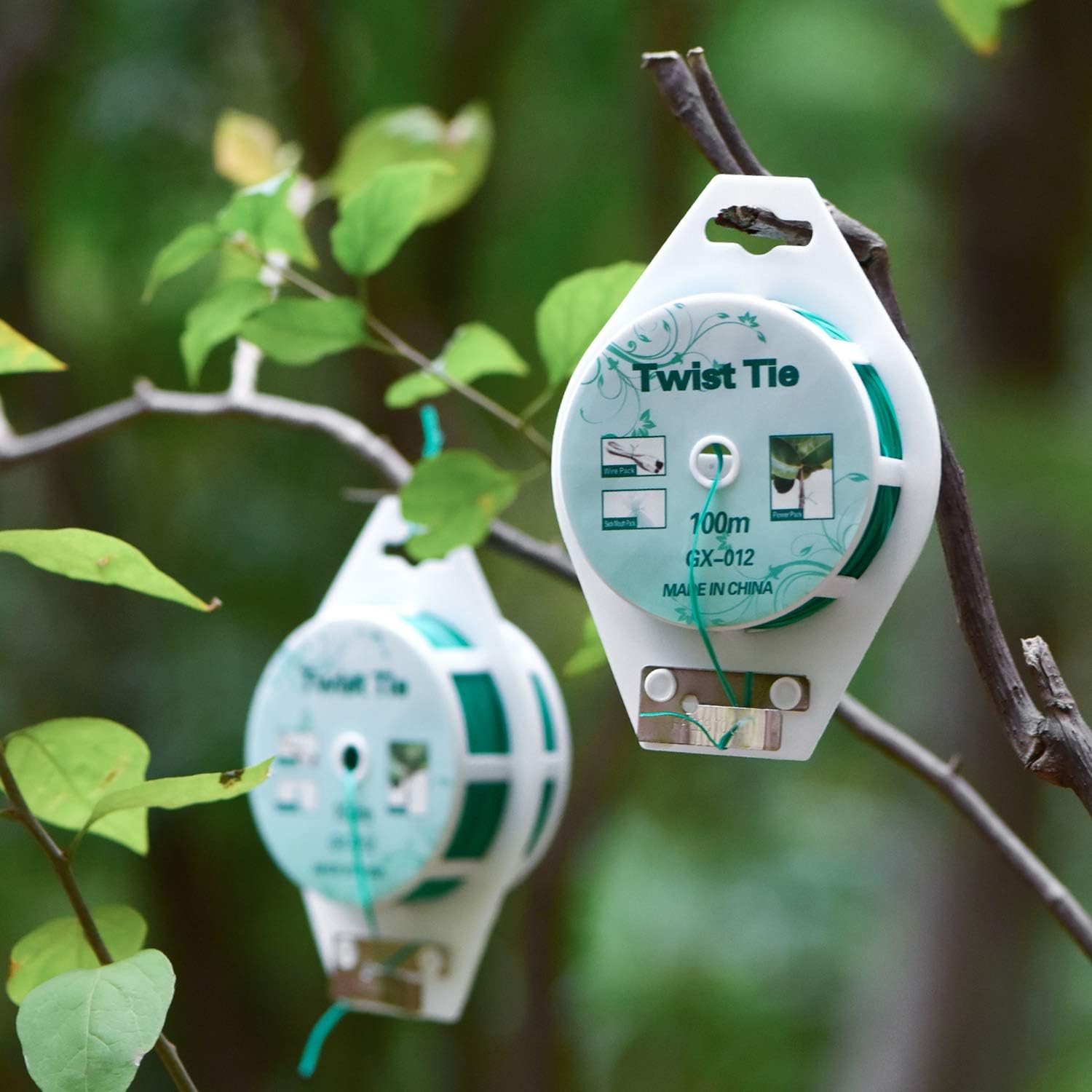 2 Reels 328 Feet (100m) Twist Tie, Green Coated Garden Plant Ties with Cutter for Gardening and Office Organization, Home