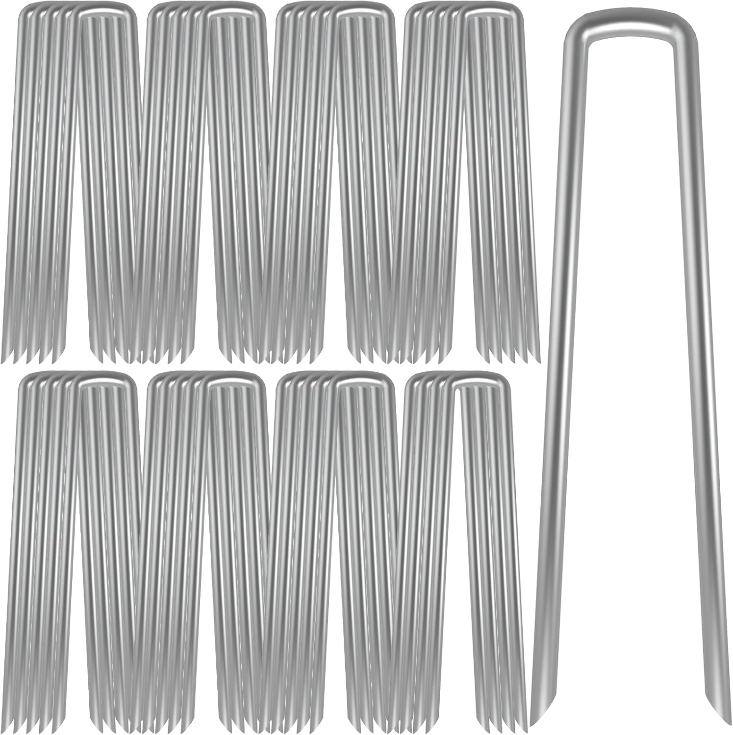 - SHARP ANGLED ENDS - Heavy duty ground stakes/tent pegs/landscape fabric pins, sink deeper in the ground for better securing. Chisel pointed ends make for easy insertion by hand, foot or hammer if needed.Steel landscape sod staples are designed to enhance your flower garden, outdoor landscape fabric, garden mat, artificial grass turf, tarp, frost cloth, hardware cloth, patio, yard decorations, chain link fence, ground cover, lights, plastic, electric wire, lawn and countless items.