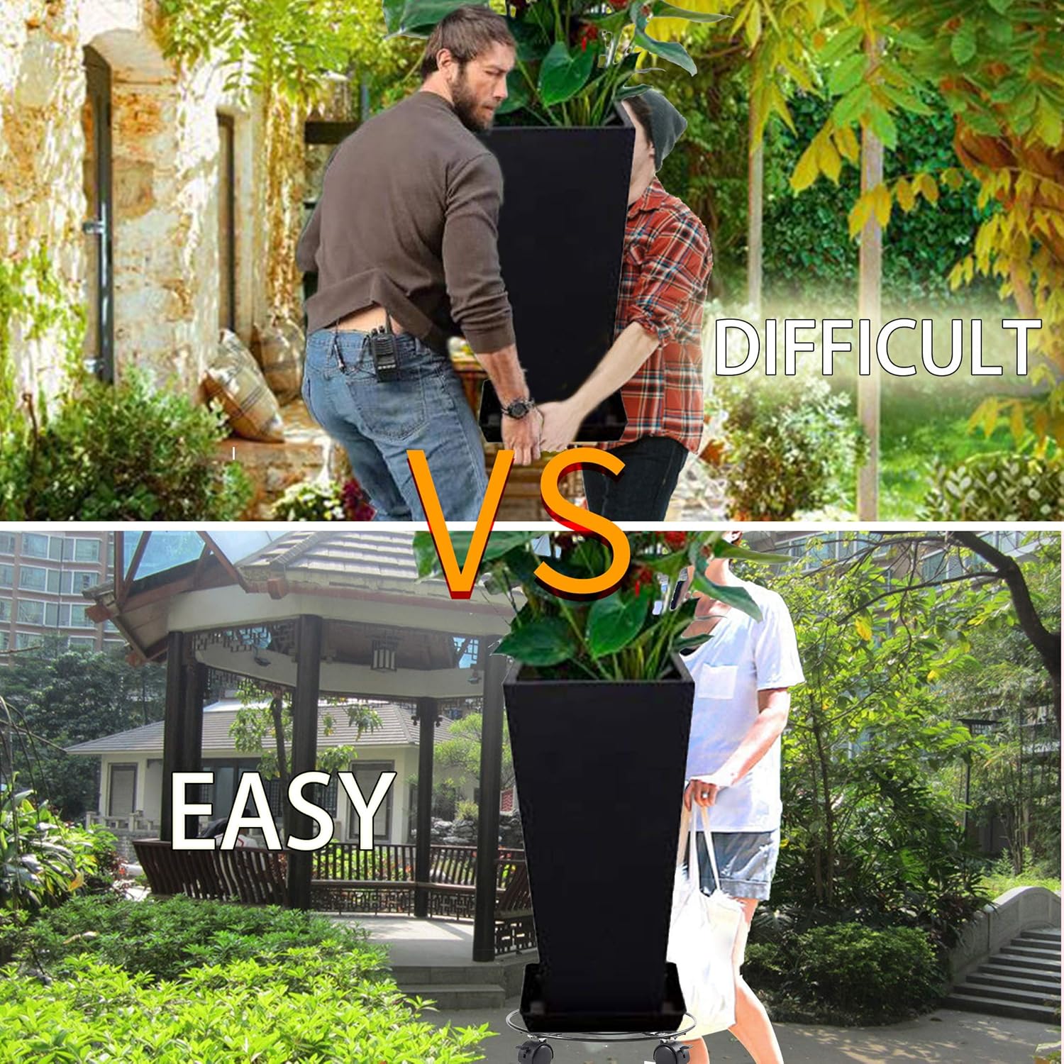 - 【 NOTE & GUARANTEE 】: This plant caddy have 4 brake universal wheels , provide wrench need yourself assembly .Do not roll at all on carpet ,if you have any question , please contact us , we’ll process send you a replacement . You have nothing to lose with this purchase . We are committed to providing better service to our customers