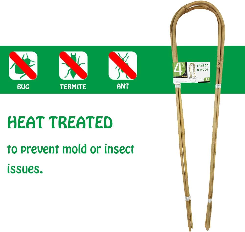 - QUALITY – Our U-hoops bamboo are all hand made, using the high quality bamboo from the subtropical monsoon climate region. Very strong and flexible, durable for several seasons, so our garden trellis U-shape won’t easily blown down by the wind, ensure the Plants grow healthily!Bamboo is eco-friendly materials, all bamboo canes are hand selected and hand treated.