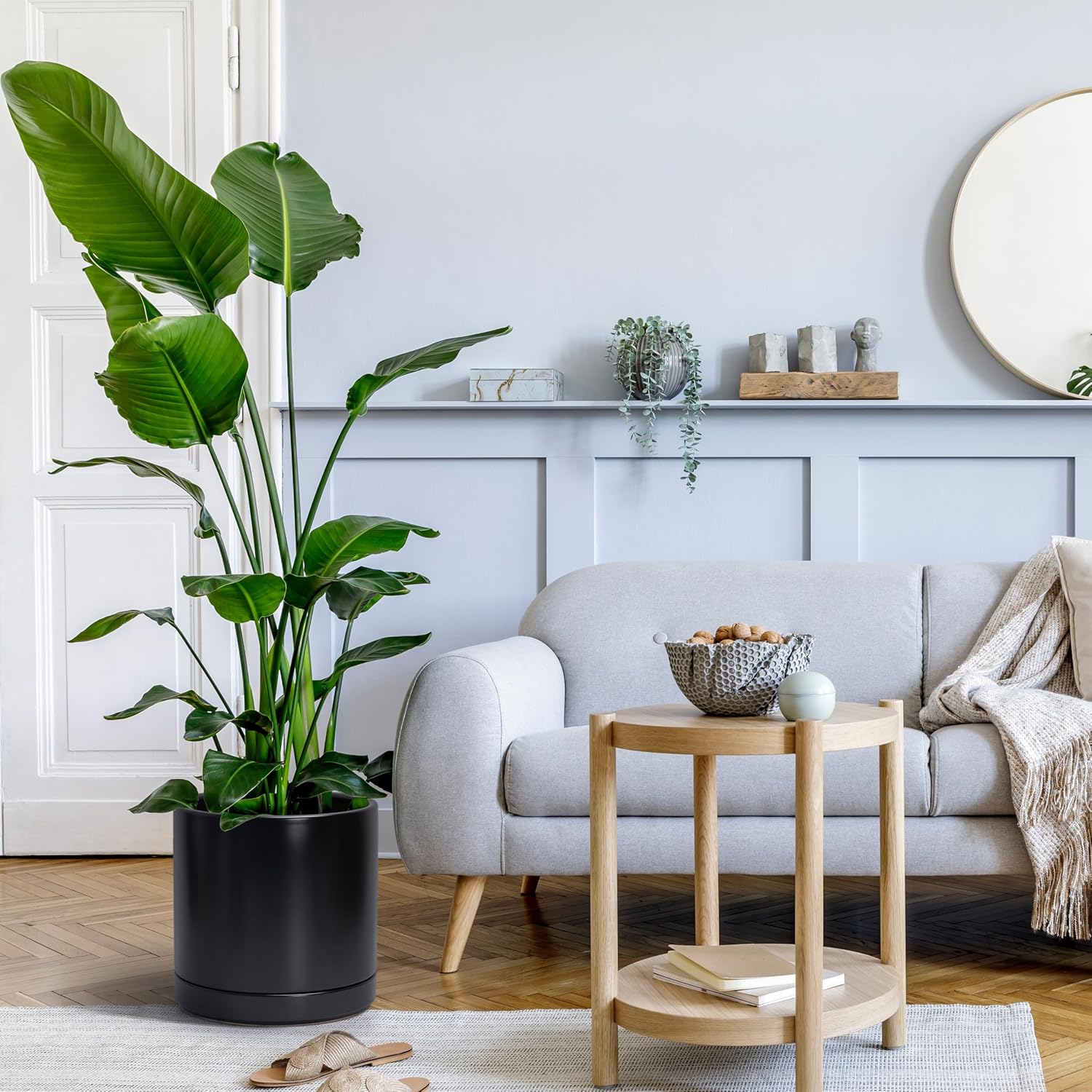 - Simple, elegant, and modern cylindrical straight round planter pot with saucer and drainage hole.