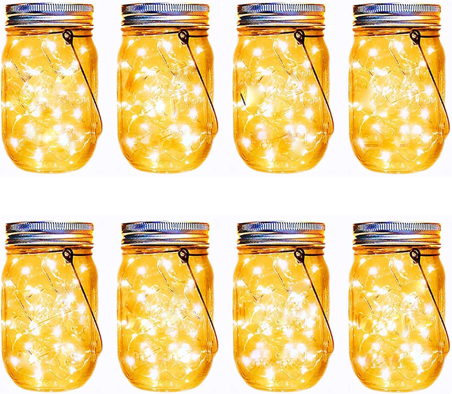 Mason Jar Solar Lights,8 Pack 30 LEDs Fairy Hanging Mason Jar Lights,Solar Lanterns for Outdoor Patio Party Garden Wedding Christmas Decor Lights(Mason Jars/Handles Included)