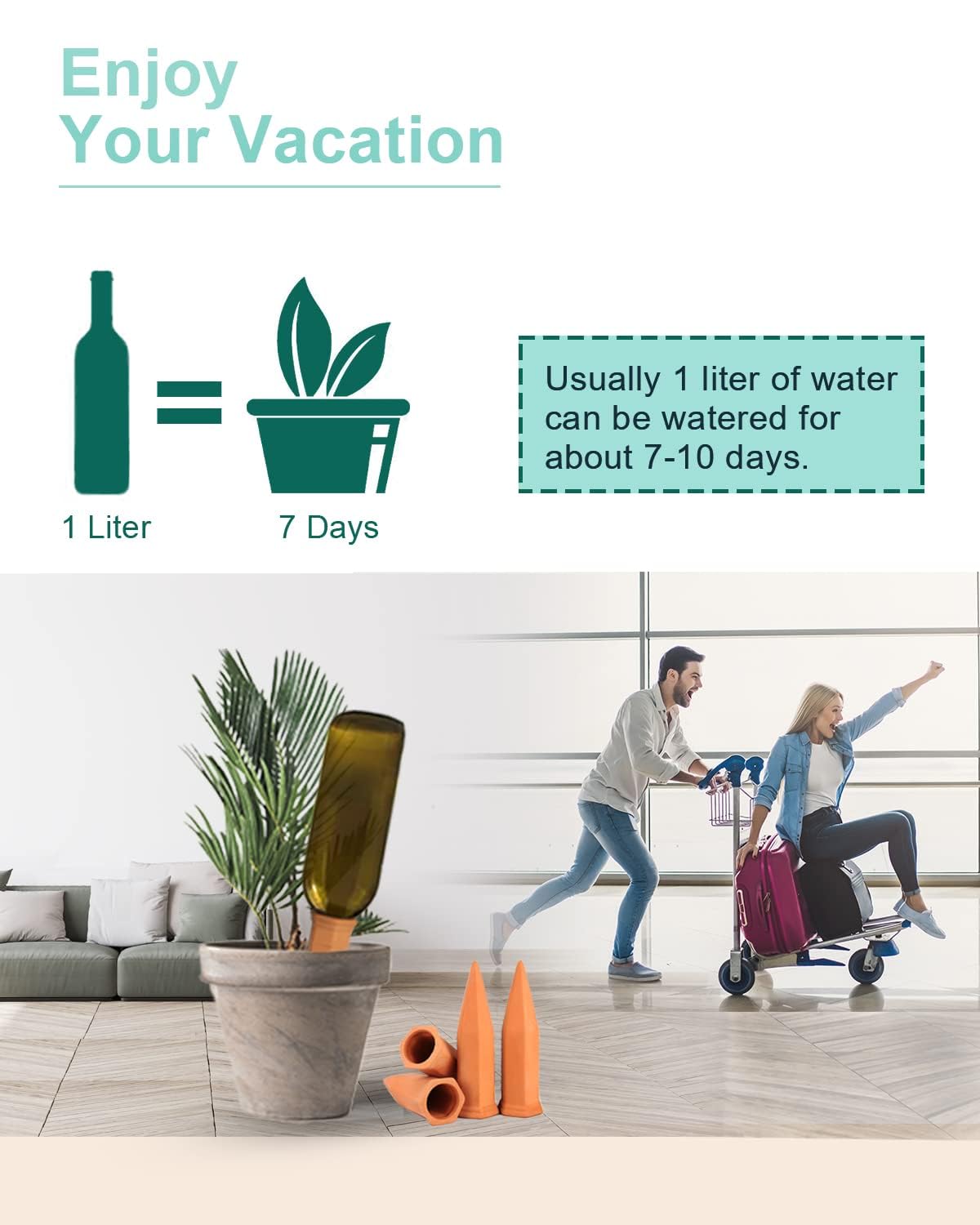 - WATERING ON VACATIONS: Just go out for vacation without any concern on your plants because our self-watering spikes will do the watering job for you. Please be aware of testing the releasing speed before setting off.