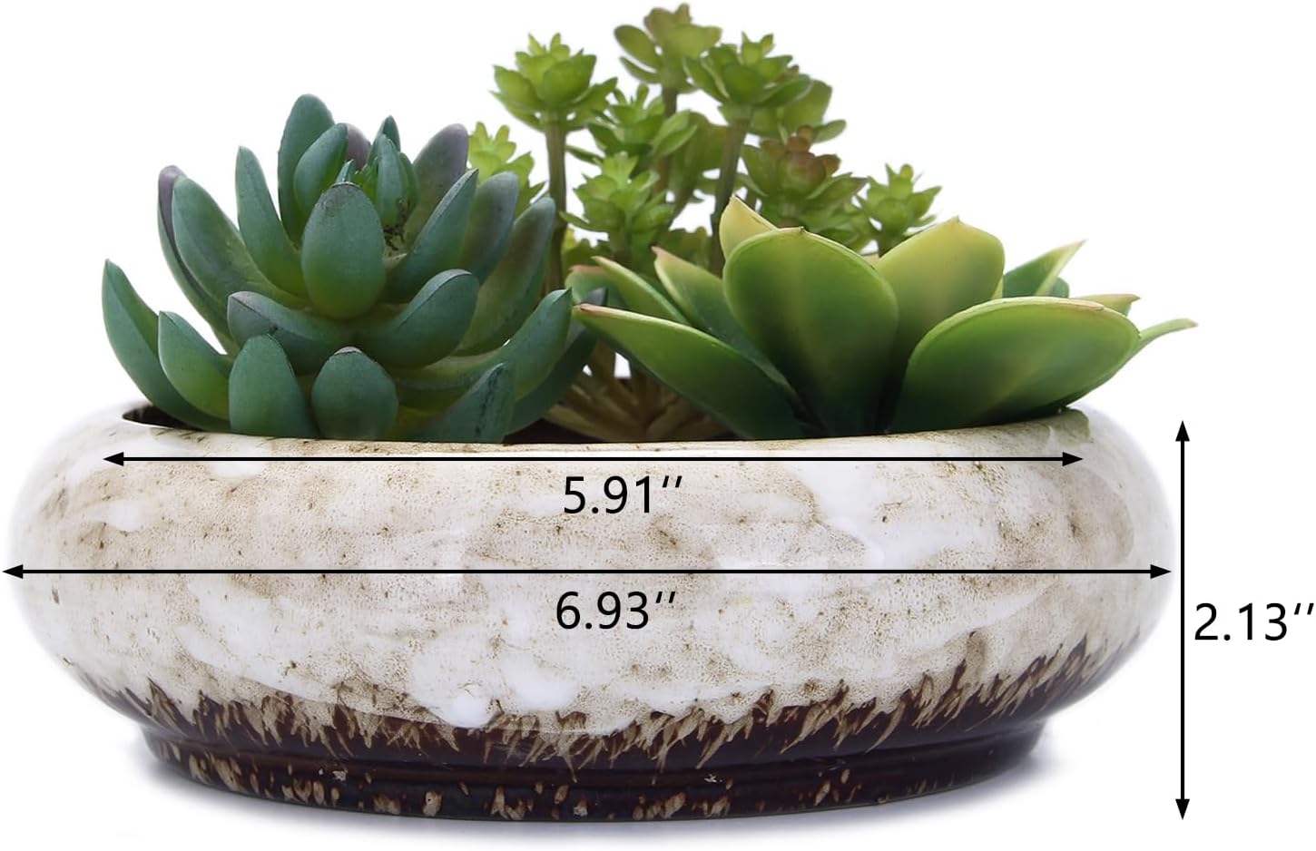 VanEnjoy 7.3 inch Round Large Shallow Succulent Ceramic Glazed Planter Pots with Drainage Hole, Bonsai Pots Garden Decorative Cactus Stand Flower Container (White)