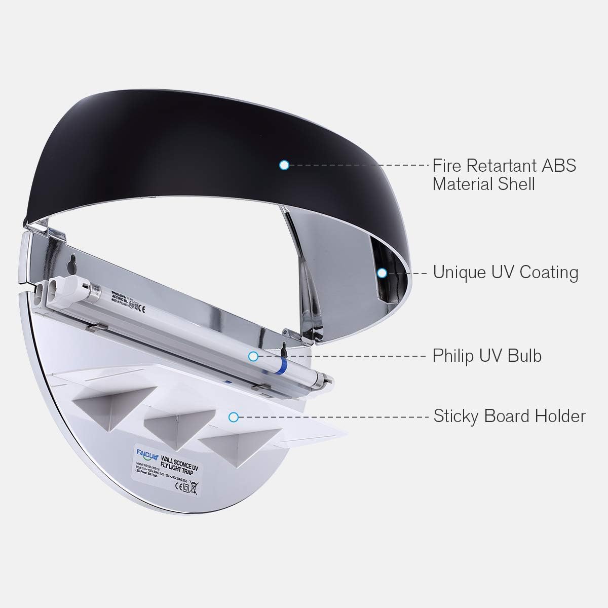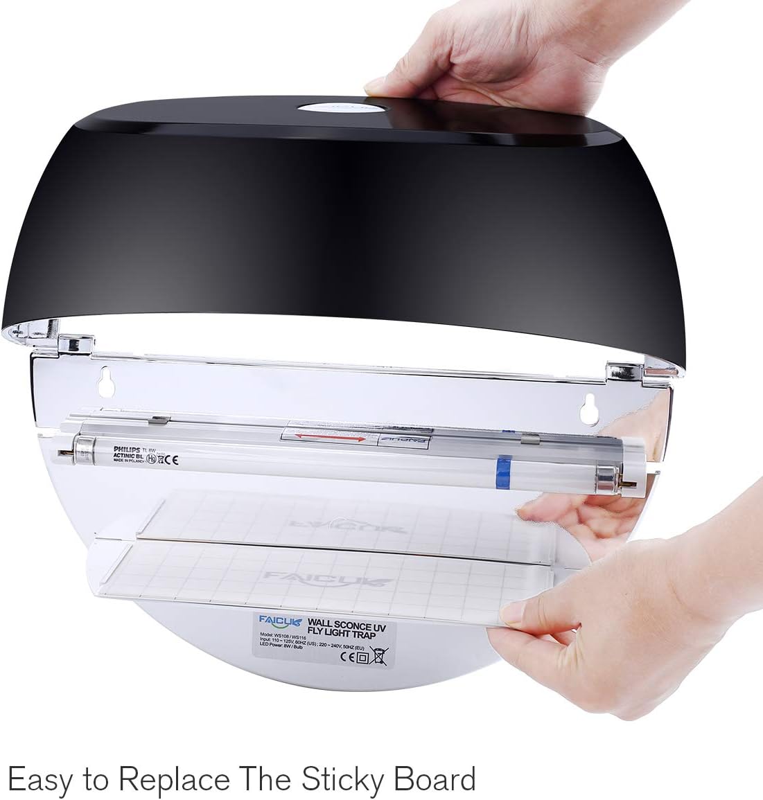Faicuk WS108 Wall Sconce Fly Light Trap for Capturing Flies, Moths, Gnats, Mosquitos and Other Flying Insects - 13"x7.5"x5.5" (Black)