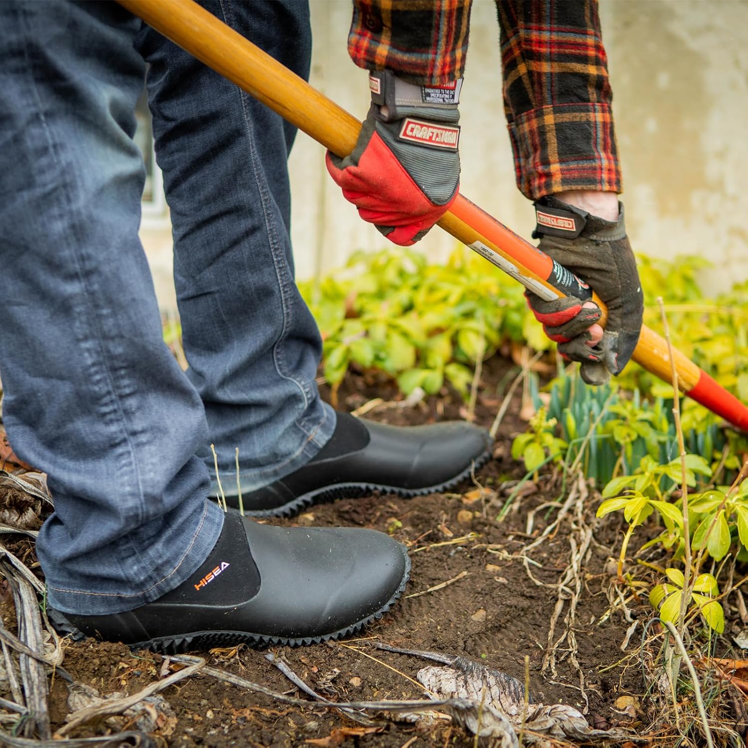 HISEA Unisex Waterproof Garden Shoes, Men's Rubber Rain Boots Women's Ankle Rain Shoes Neoprene Camp Booties Outdoor Slip-On Footwear for Gardening, Farming, Camping, Car Wash, Lawn Care and Yard Work