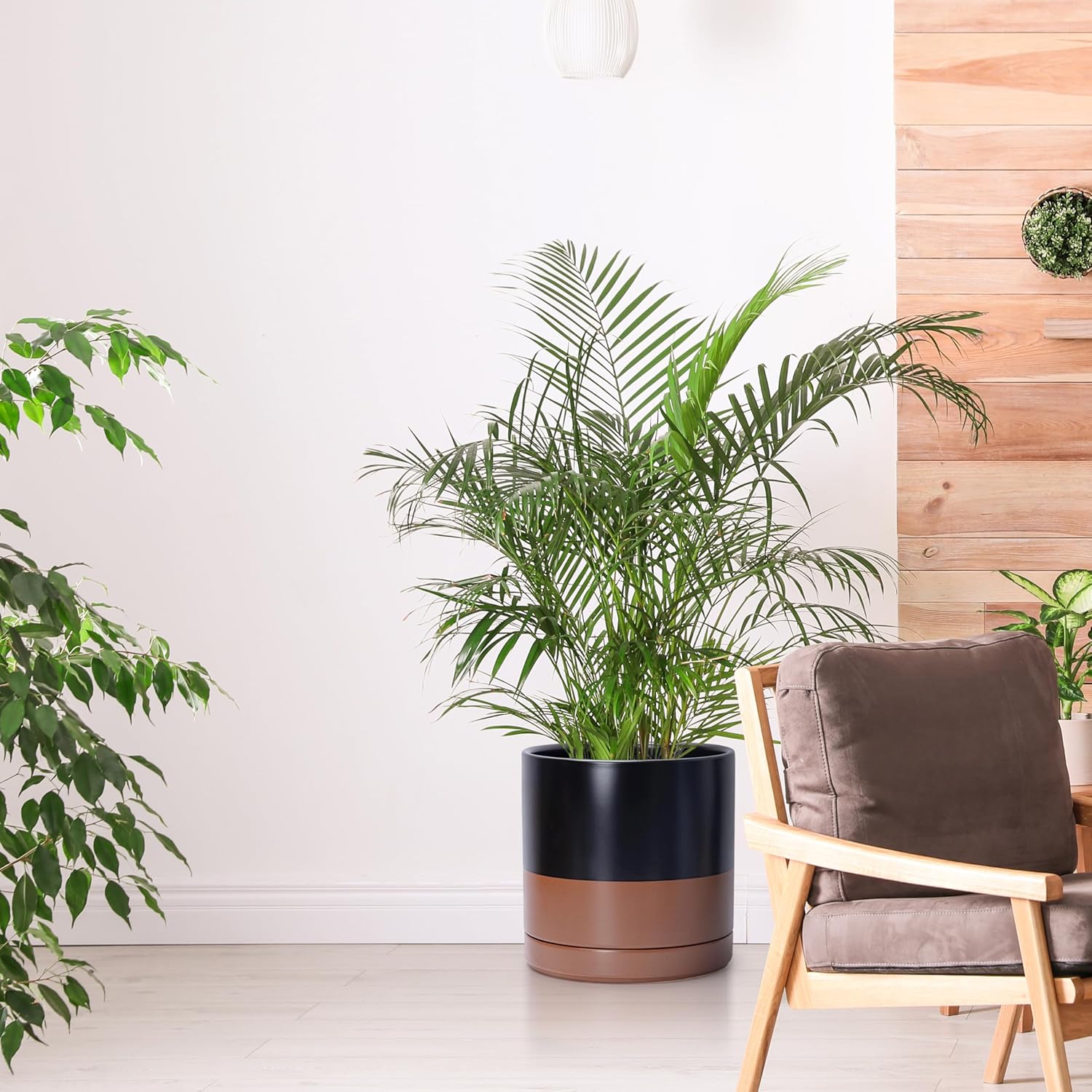 - Fitting/matching ceramic earthenware indoor planter pot; ceramic tray/saucer Included.