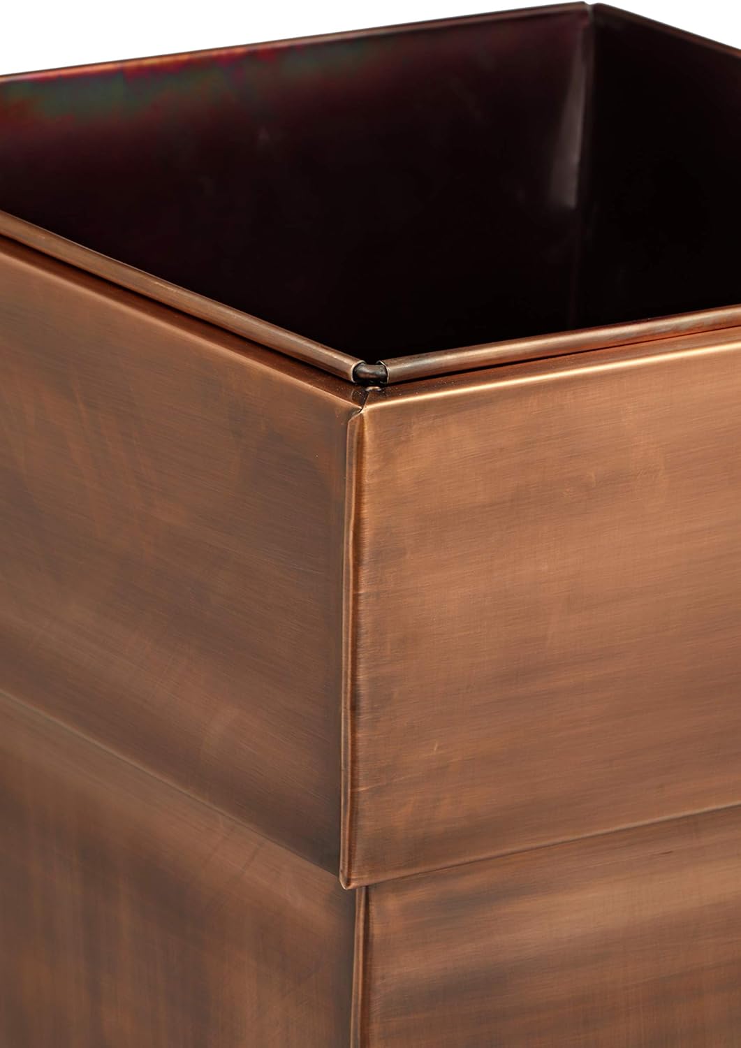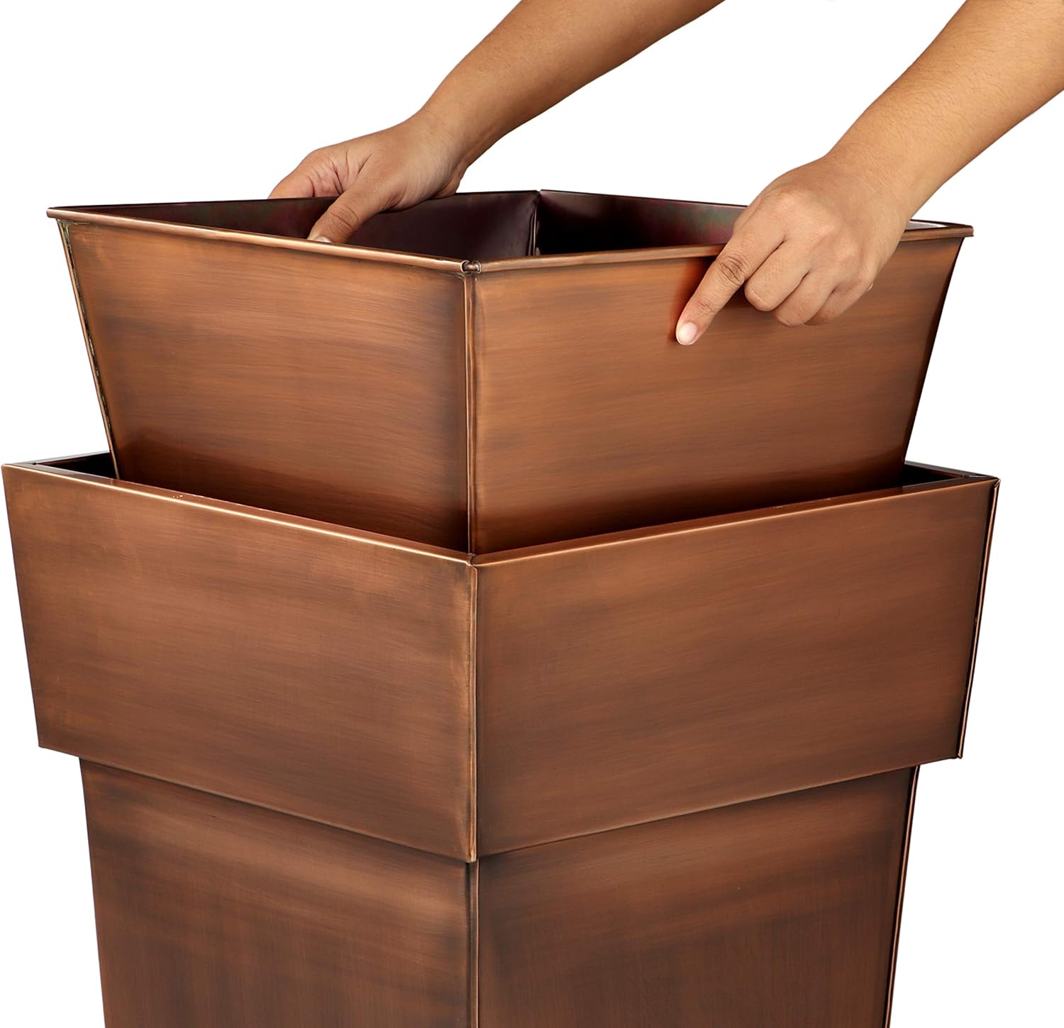 - Eye-Catching Planter: This H Potter stainless steel planter with an antique copper finish is a stunning pot for filling with any greenery of your choice. Tall and vertical its perfect for displaying indoors or outdoors. Measurements are approximately 15” at widest top opening, 36.5” high and base of planter is 9.25” square. Planter insert 14"sq at top opening, 11"sq at bottom. Plants are not included.