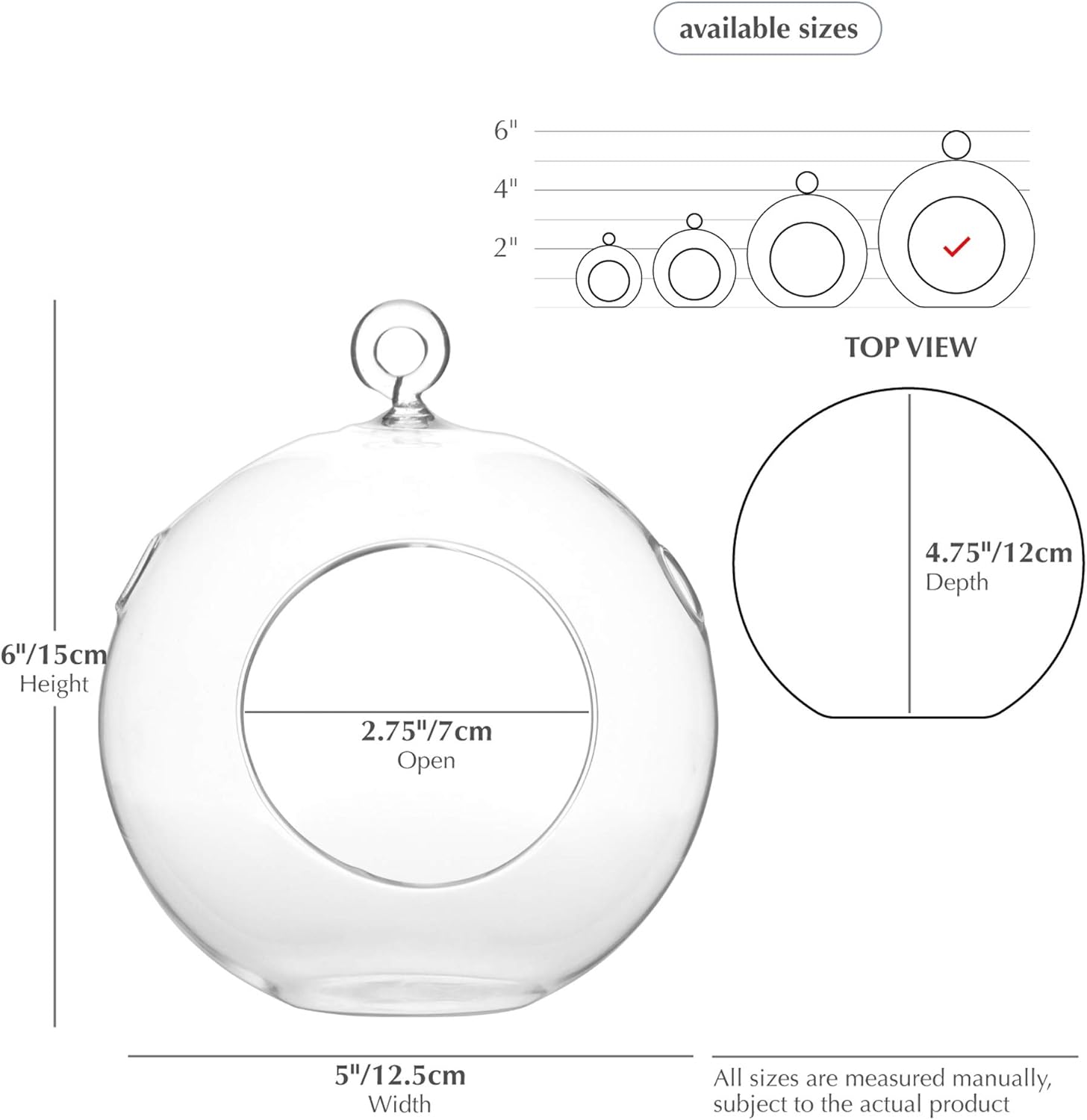 WGV Hanging Terrarium Globe, Width 5", Height 6", DIY Air Succulent Planter, Clear Glass Vase Orb with Flat Bottom, Candle Holder for Windowsill Outdoor Garden Decor, 6 Pieces Bulk