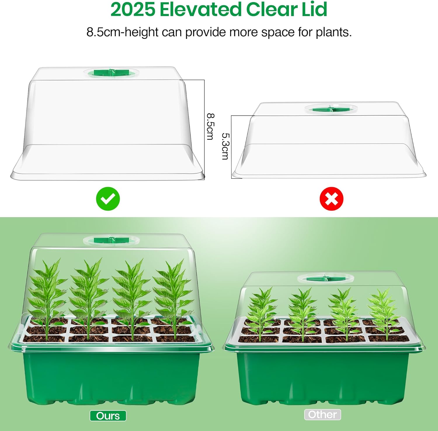 - 🌱【Elevated for Enhanced Growth】Bonviee upgraded seedling trays feature taller lids, offering your young plants ample room to thrive. This extra height benefits not only seed germination but also the early stages of plant cutting development, allowing tender plants to flourish for longer periods within the seed starter trays.