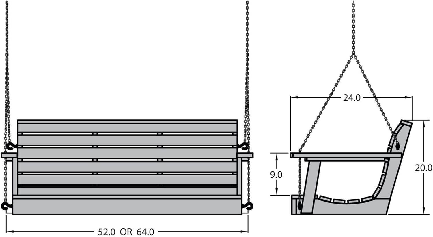 - ROCK YOUR WORRIES AWAY: Our Weatherly 4 foot porch swing offers a contemporary feel for your patio with a modern design that feature horizontal board patterns. Each swing includes (2) 7 foot chains and (2) 2 foot chains for easy installation to a sturdy structure. Assembled 4ft swing is 52"W x 20"H x 24"D (38lbs)