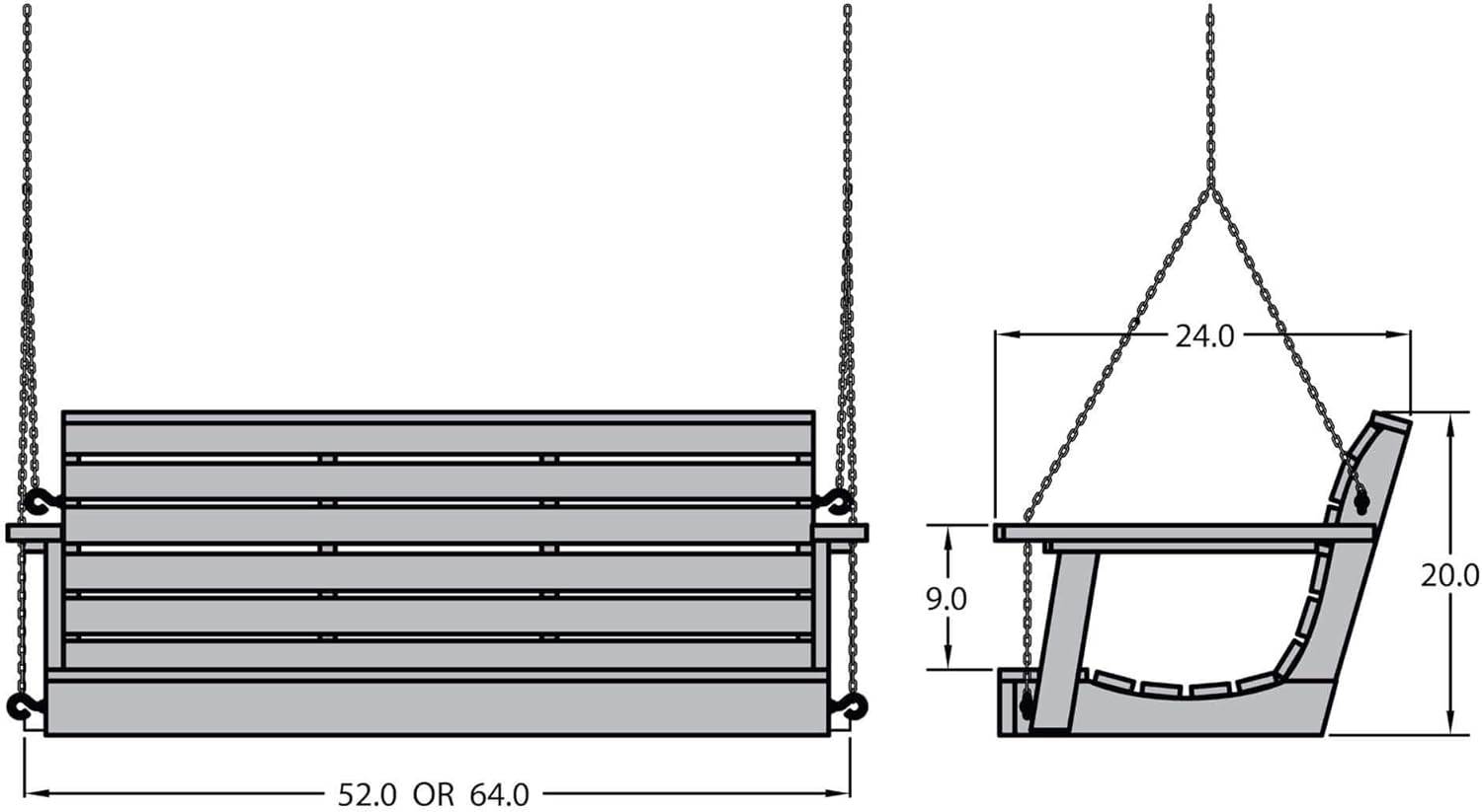 - RELAXING BOLDLY: Our Weatherly 5 foot porch swing offers a contemporary feel for your patio with a modern design that feature horizontal board patterns. Each swing includes (2) 7 foot chains and (2) 2 foot chains for easy of installation to a sturdy structure. Assembled dimensions are 64"W x 20"H x 24"D (44lbs)