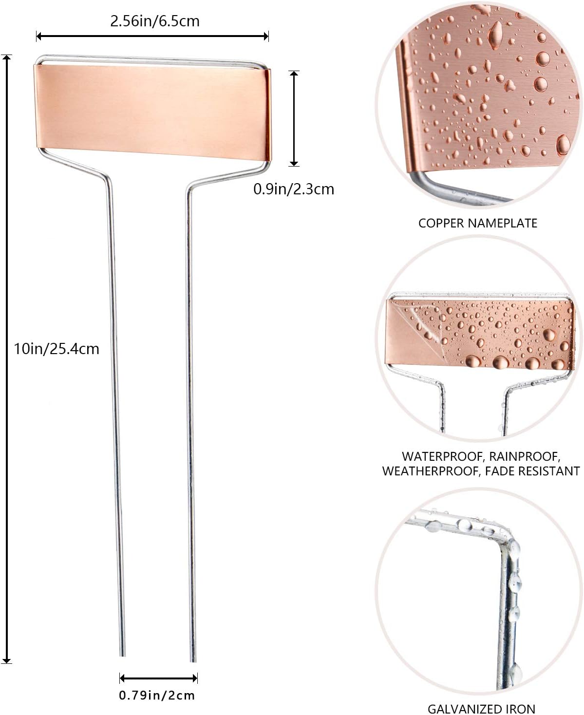 - 30 Pack Banner Copper Plant Labels - A set of 30 reusable planting plant markers made of copper, you can make a mark with permanent marker, metal stamp or label-maker. Copper nameplate measures 2.56x0.9in (6.5x2.3cm), each label has plenty of space for you to write on. The total height is 10in (25.4cm), and the sturdy two-foot design are easy to insert into the soil and relocate around the garden.