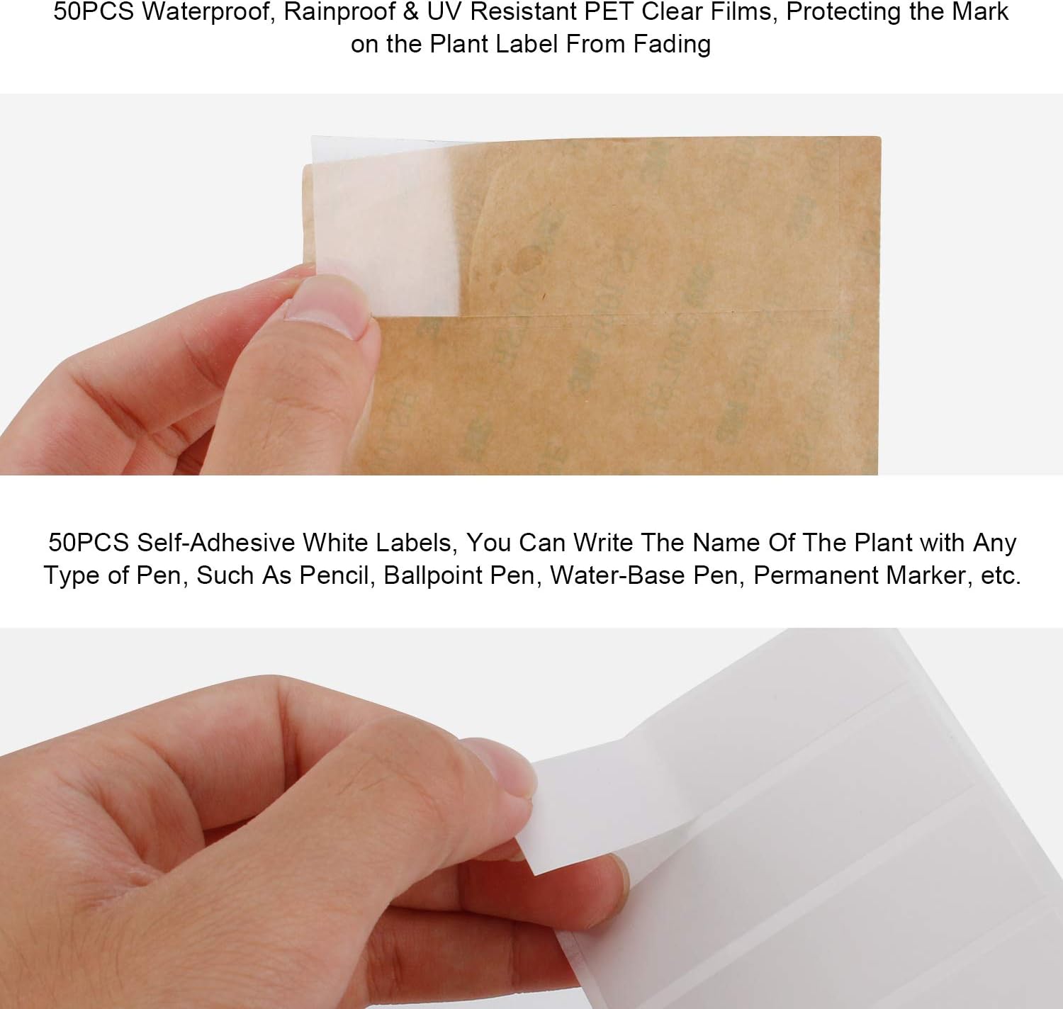 - Marking Protection & Retention - Comes with 50pcs self-adhesive white writing tags and 50pcs PET transparent films, it can be used to protect your handwriting mark. You can write on white labels with any type of pen, such as pencils, water-based pens, ballpoint pens, permanent ink markers, and more. The transparent film protects the marking from being washed away by rain and has a strong sun protection effect, which can effectively prevent the marking from fading due to time or weather problems.