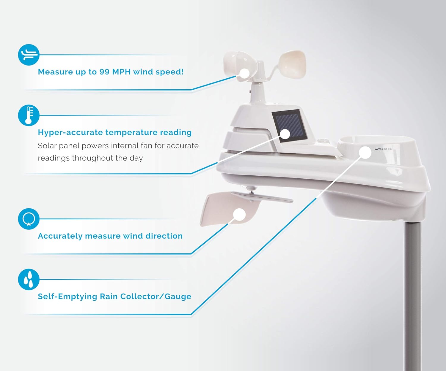 AcuRite Iris (5-in-1) Home Weather Station with Direct-to-Wi-Fi Wireless Display and Alerts for Remote Monitoring Indoor/Outdoor Temperature and Humidity with Wind Speed/Direction (01544M)