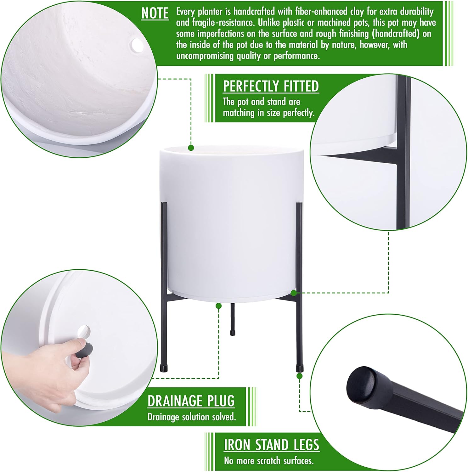 - Handcrafted Fiber Clay Planter: The planter is handcrafted from fiber clay and combined with a heavy-duty metal stand for stability.