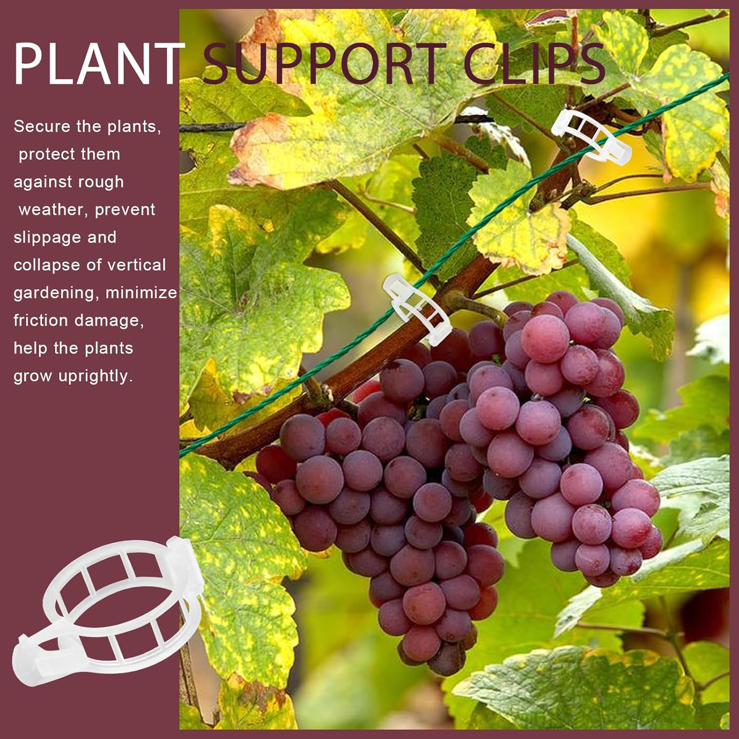- Well Designed Trellis Clips: 1” in inner diameter, fit for most plant stem/vine. With 8 hollows carved, facilitate air flow, avoid high moisture. A narrow gap in the middle joint for strings passing through, connect and fix multiple clips for vertical gardening.