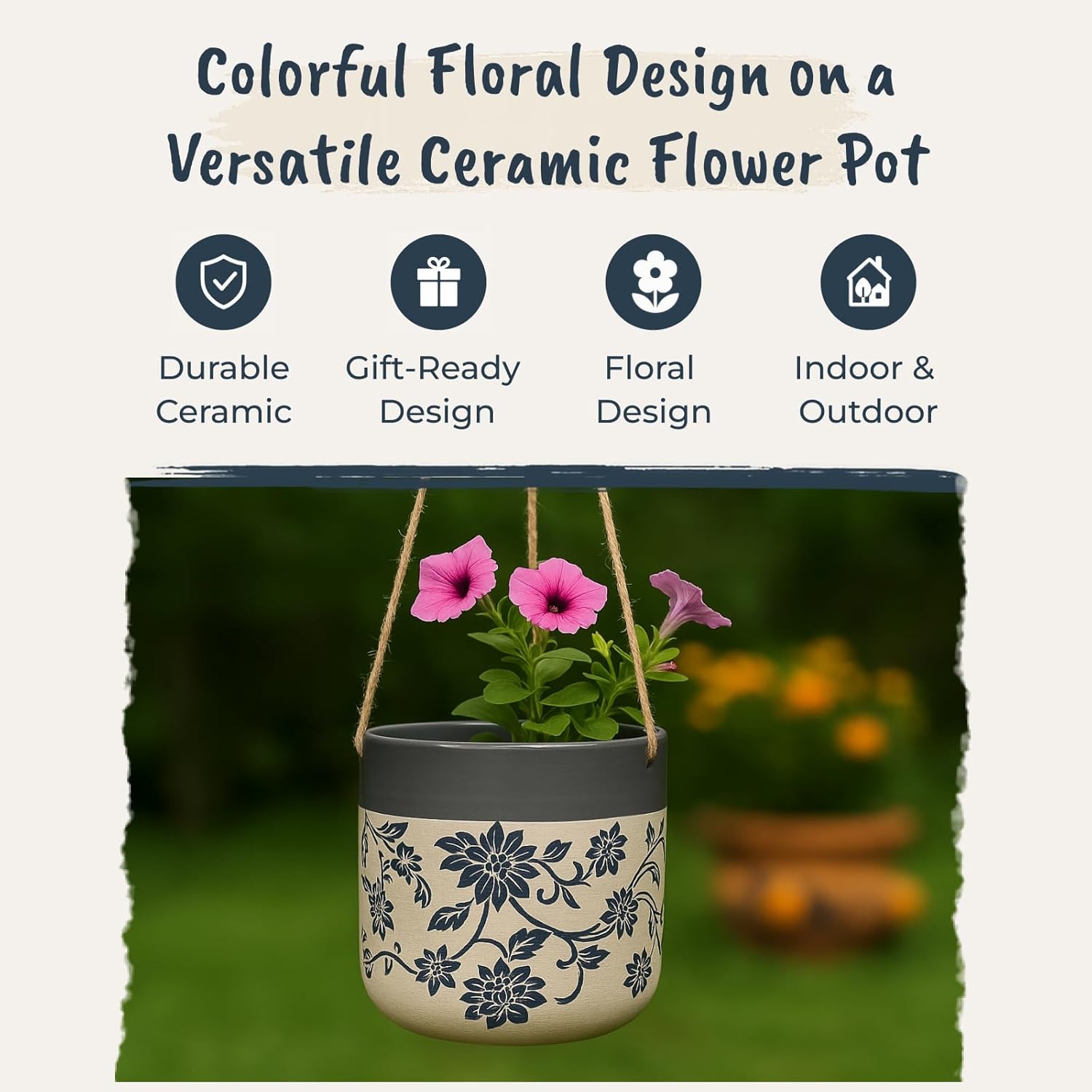 Hanging Rambling Floral 5'' Flower Pot, Multi Color