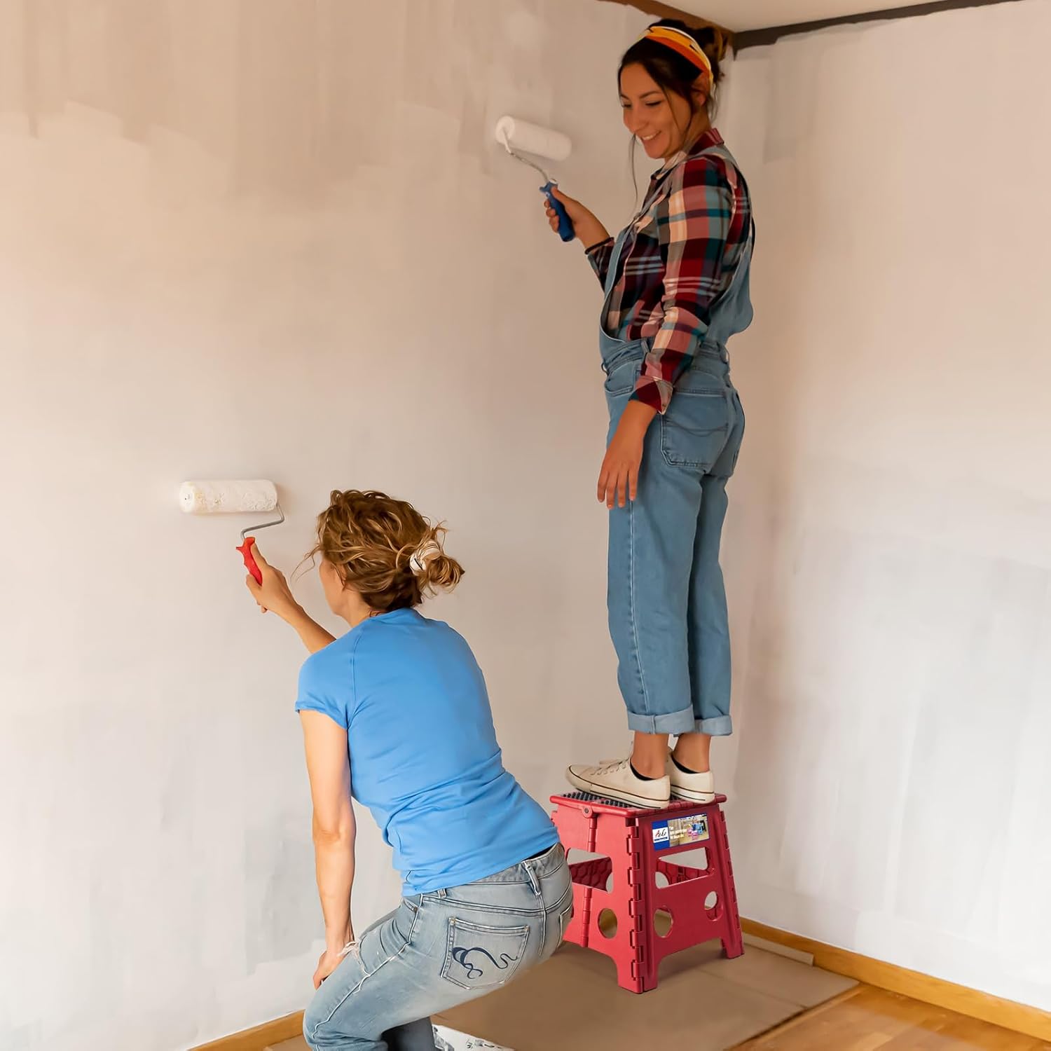 ACKO Folding Step Stool - 13" Height Premium Heavy Duty Foldable Stool for Kids and Adults, Kitchen Garden Bathroom Stepping Stool (1 Pack) Dot Red