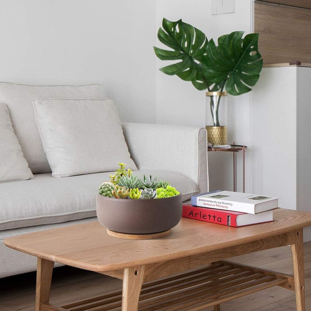 SQOWL Terracotta Bonsai Planter Pot for Succulent 8 Inch Pottery Round Planter Cactus Clay Flower Pot with Drain Hole and Bamboo Tray Indoor Outdoor
