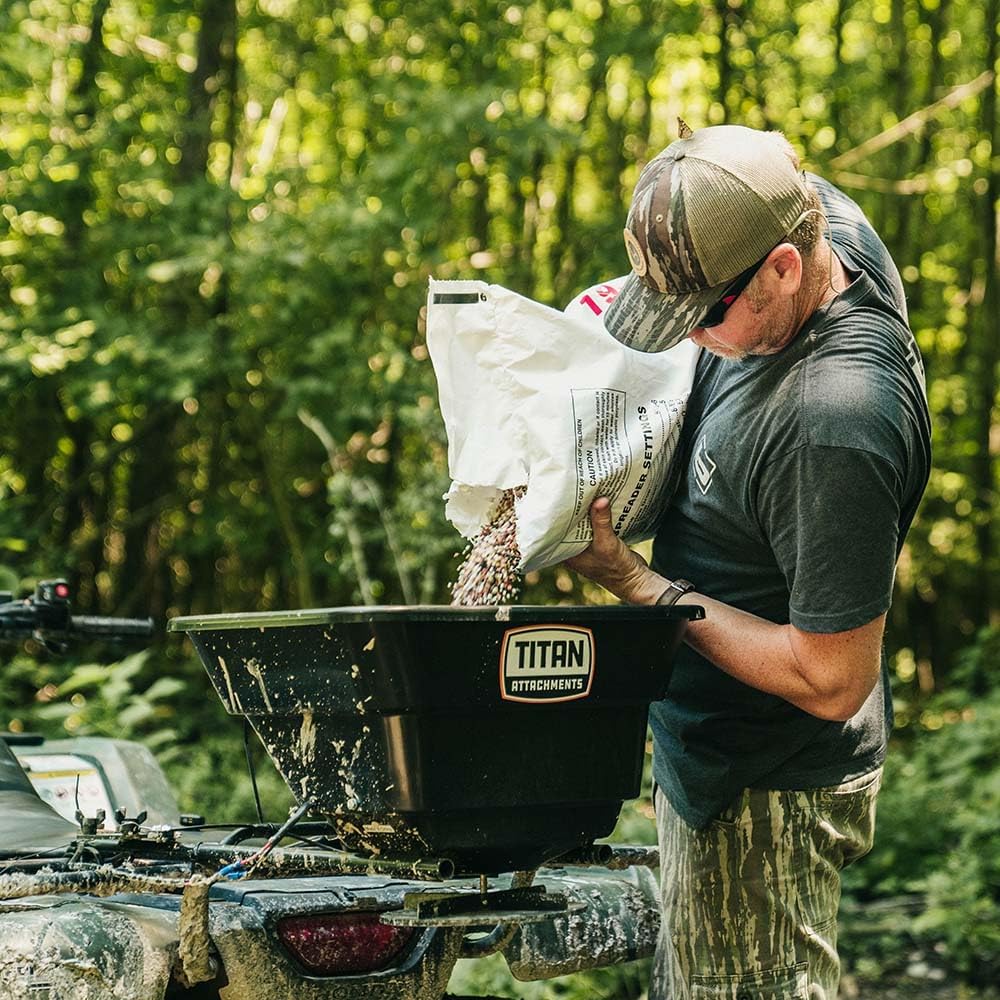 - BROADCAST SPREADER: Seeding your land has never been easier with the 12-Volt Broadcast Spreader, which mounts to the front or rear utility rack of your ATV/UTV. It's designed to eliminate the hassle of seeding by hand.