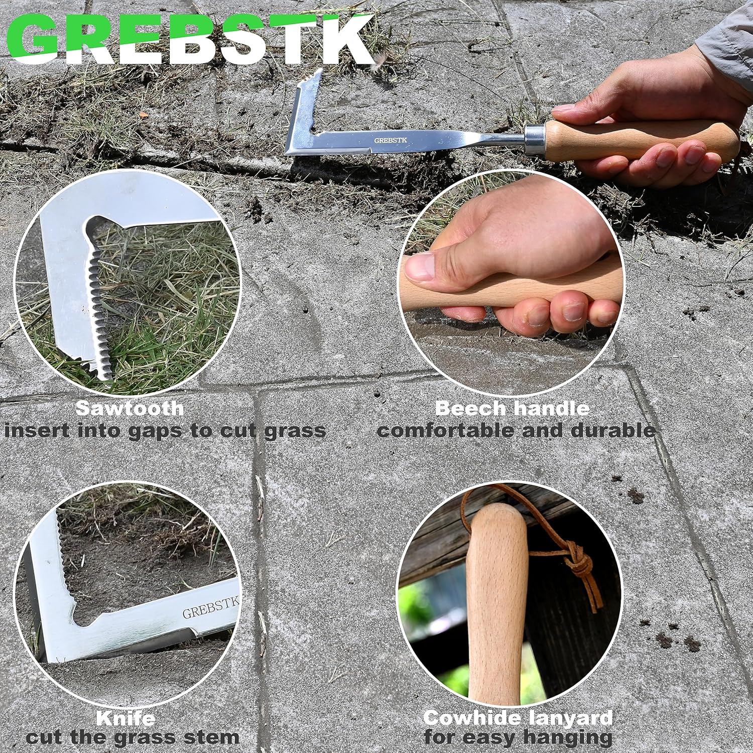 - The GREBSTK brand manual weeder help remove weeds and grass from between patio stones and driveway cracks. Perfect weeder for gardens and especially sidewalk cracks and other tight spaces.