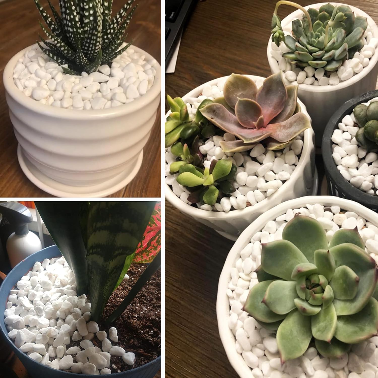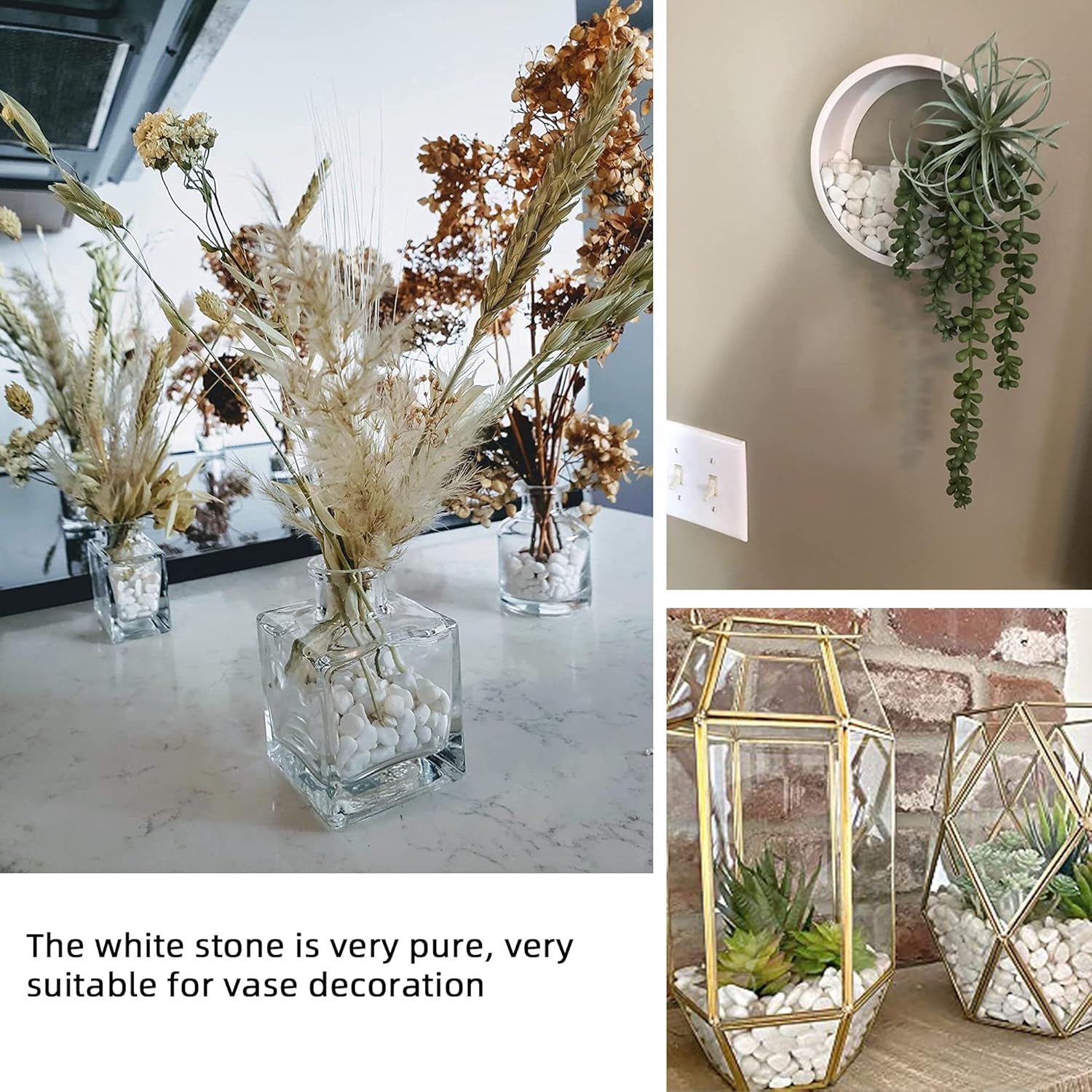 - 🌑【WIDE USES】Common applications include succulent containers, and potted plants,vases and terrariums.It is perfect for home decor and a creative interior and exterior design. The possibilities are endless with these floral arranging white gravel rocks!