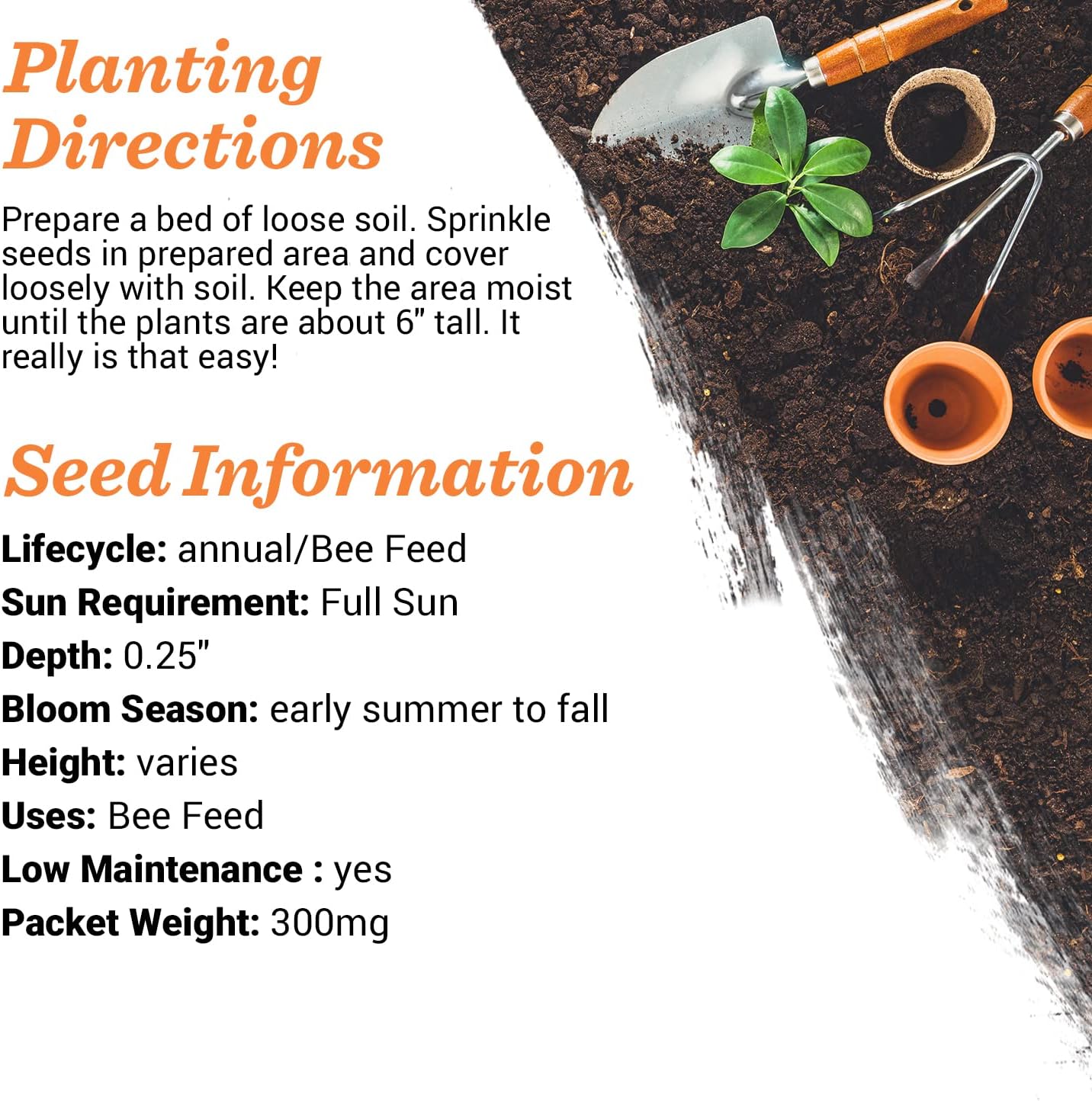 - GIFT: Our seed packs make the perfect gift for any flower, bee, or nature lover in your life. Planting our seeds, caring for their growth, and then watching the resulting colony of bees pollinate the lovely flowers is sure to put a feel-good smile on anyone's face. Our bulk individual seed packets are great for new homeowners, realtors, or anyone with (or without) a green thumb! Packet size: 3 ¼" x 4 ½".