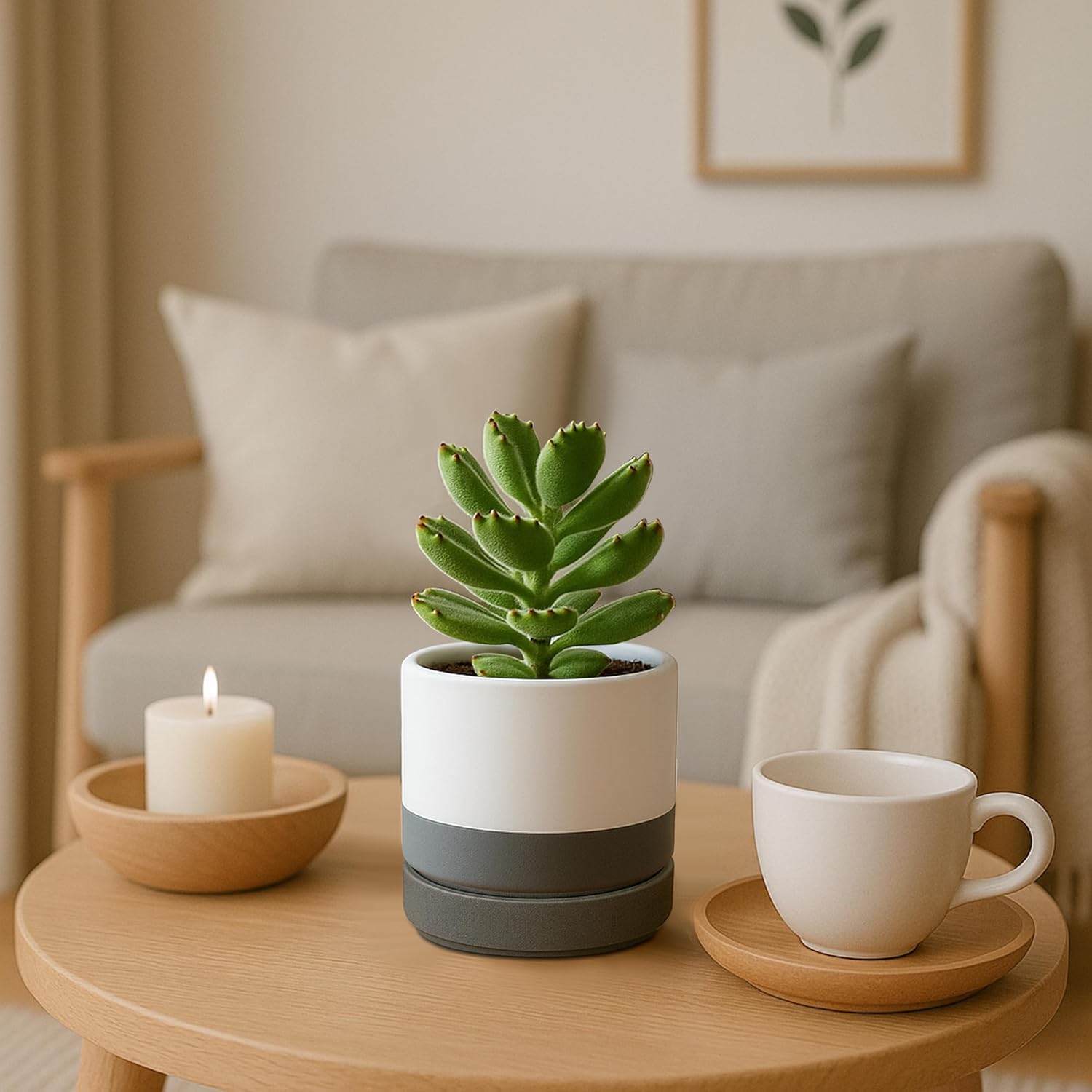 D'vine Dev Set of 4 Small Ceramic Plant Pots, 4.7 Inch Succulent Planter Pot for Plants with Drainage Hole and Saucer, White/Speckled Grey, 94-X-B-6