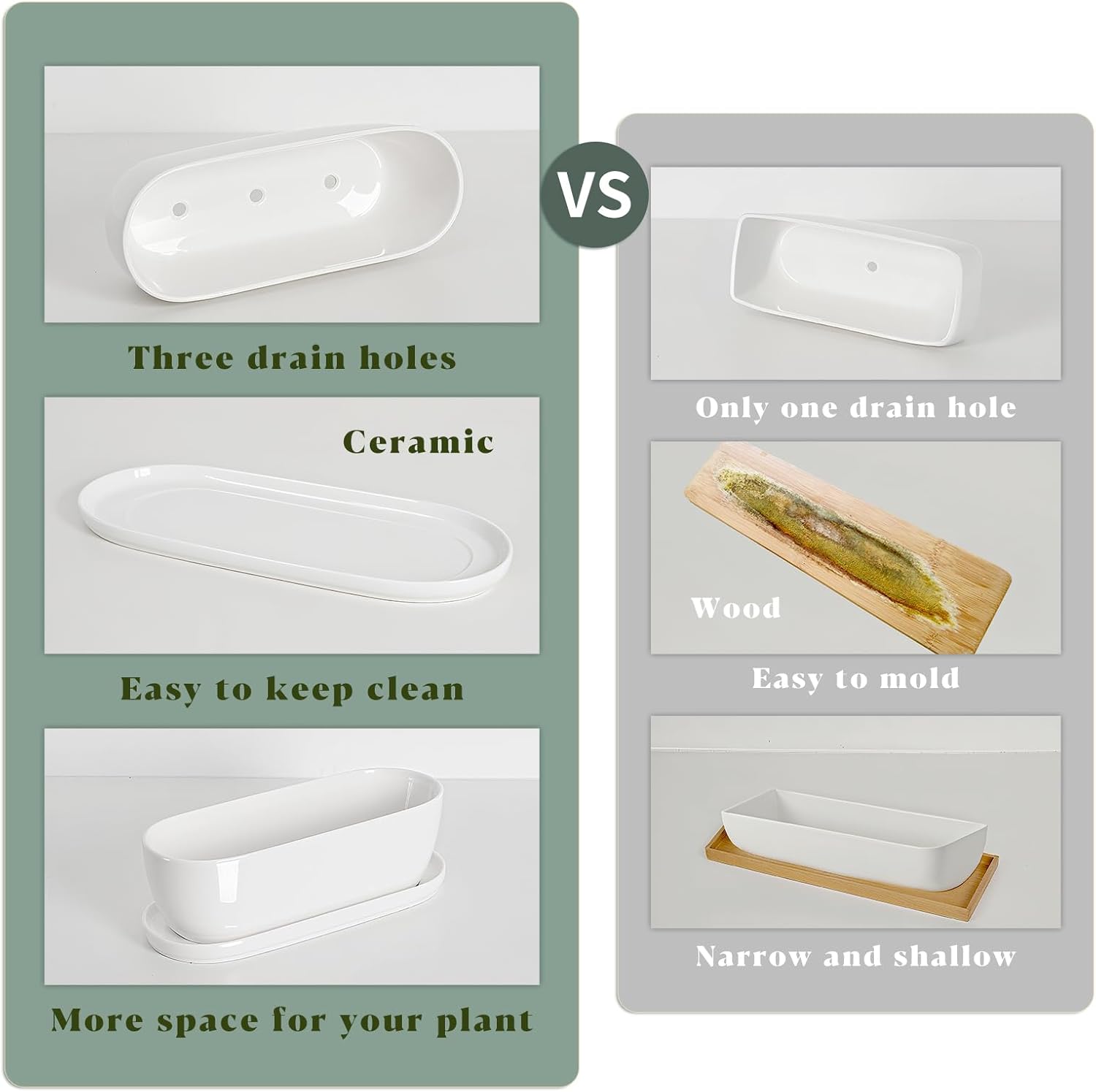 - Drainage Holes, Ceramic Tray: This succulent pot features 3 drainage holes at the bottom and includes a separate ceramic tray to prevent overwatering. Suitable for indoor or outdoor use, it's perfect for planting herbs, succulents, and cacti
