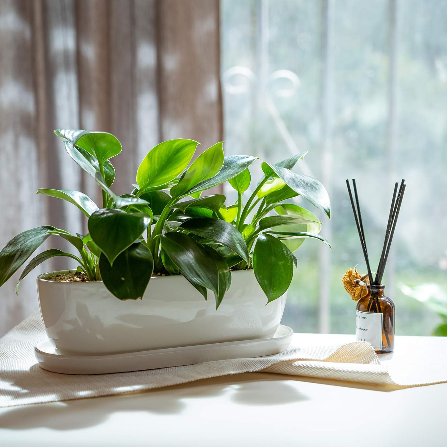 - Indoor Outdoor Ceramic Pots: 11’’ in length, 4.3'' in width, and 3.7’’ in Height. Great for decorating windowsill, tabletop, shelf, bedroom, kitchen, garden, and outdoor patio. Smooth inner finish for easy cleaning