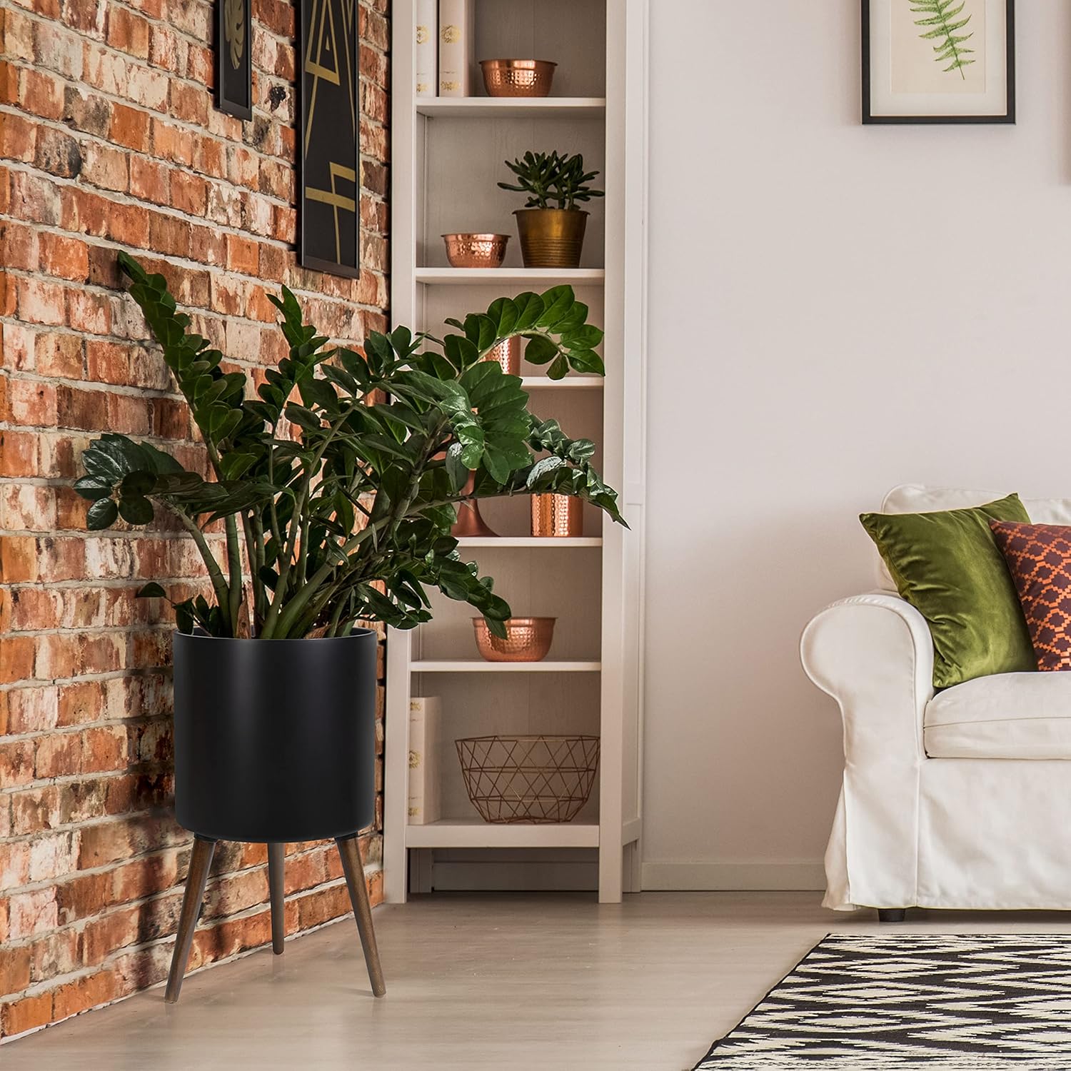 D'vine Dev 14 Inch Planter Pot with Stand, Mid-Century Tall Plant Pot with Legs for Indoor Plants, X-Large, Black, 88-O-D-2
