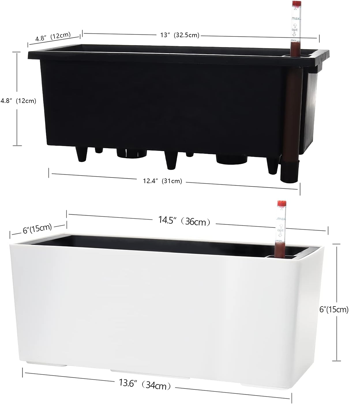 SAROSORA 14" Rectangle Self Watering Planter with Water Level Indicators for Plants & Flower Home Garden Outdoor Indoor Succulent | Herb pots | Window Box (1, White)