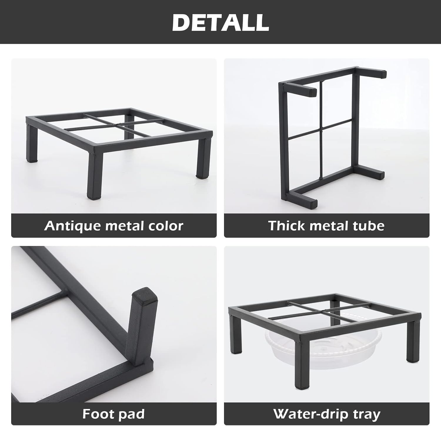 6" Small Metal Duty floor Potted Plant Stand Flower Pot Holder with Saucer Indoor Outdoor Rustproof Iron Garden Container Square Supports Rack for Planter ,2 Pack(back color )