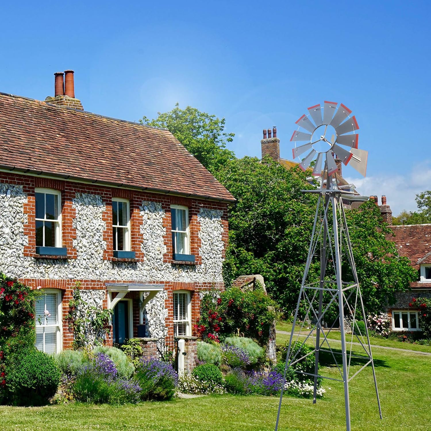 - 『Healthy Lifestyle』:Windmills are operated by wind power and do not require batteries or sockets. Our windmill provides you with a healthy and friendly lifestyle. Noise-free windmills will be the beautiful scenery of your garden.8FT Garden Yard Metal Windmill Windmill