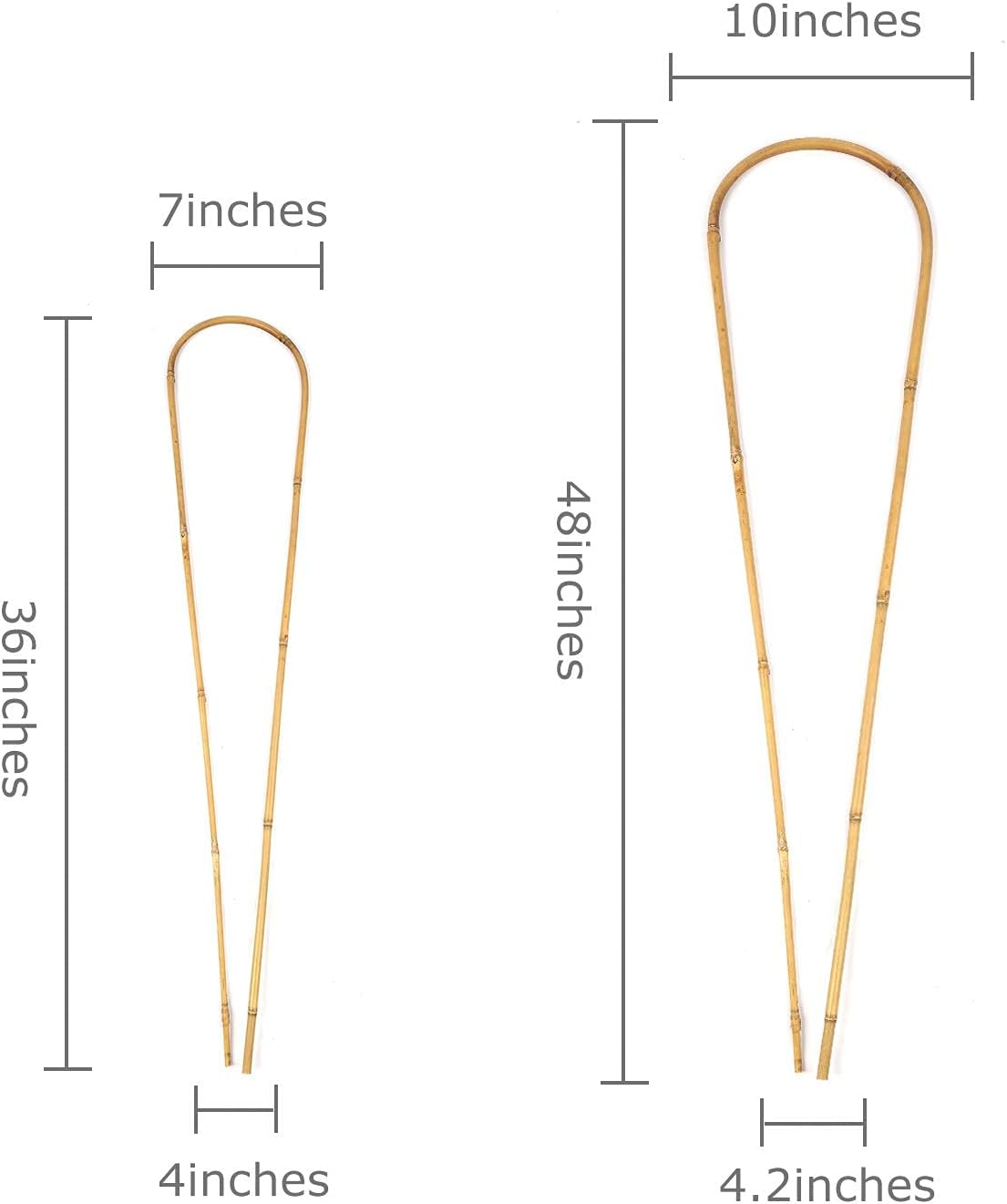 - PACKAGE & INSTALLATION: You’ll get 3pcs 3 ft bamboo trellises, upside width: 7 inches; underside width: 4 inches. Just stick garden trellis into the ground, it can also be used in combination to achieve a more stable effect(Handmade products, measurement tolerance range: ≤±0.8 inches)