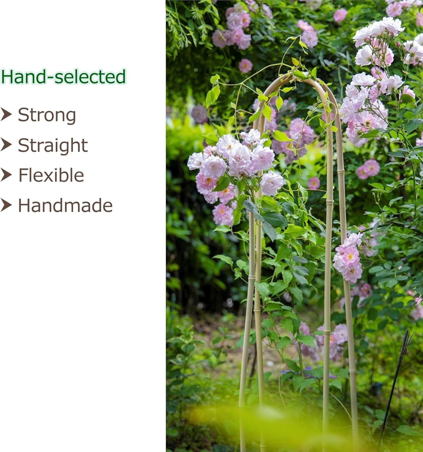 - NATURAL ARCH TRELLIS: Cambaverd premium houseplant bamboo trellis is hand made from natural and renewable materials, with natural environmental protection. Bamboo is fumigated twice to ensure strong quality and long life. Garden plant trellis is very strong, flexible, and sturdy, can support climbing plants, so our potted plant support won't be easily blown down by the wind
